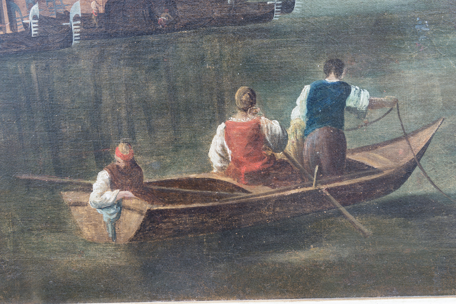 Tra i pittori veneziani che nella seconda metà del Settecento copiavano o imitavano le opere di Canaletto si distingue Giuseppe Moretti, uno dei pochi pittori veneziani dell’epoca di cui non si hanno precisi dati anagrafici e un’immagine complessiva del suo operare. L’unico periodo documentato sono gli anni Settanta, quando, tra il 1776 e il 1780, in una nota a un suo dipinto, "Capriccio con il Castel Sant’Angelo", parte della collezione di Francesco Algarotti (oggi nella Galleria Nazionale di Parma) (nota 7), Giovanni Antonio Selva (1851-1819) lo definisce «Veneziano vivente» e aggiunge che «ha perfettamente imitata la maniera di Canaletto» (nota 8).