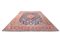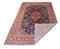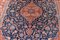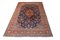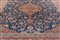 Classico esemplare con piccolo medaglione allungato in rosso, contenente al centro una stella azzurra, con due pendenti, appoggiato sul campo di colore blu riccamente decorato con motivi floreali. Bordura a fondo rosso, con tipiche rose di Kashan, alternate a foglie biforcute.