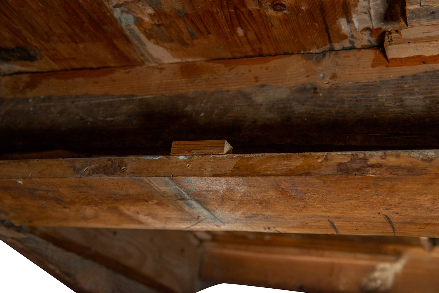 Nella scheda Cuoghi, il mobile è letto come produzione veneziana tra il 1730 ed il 1760. Con autonoma perizia, Maricetta Parlatore Melega, specialista di restauro, ha confermato la datazione del mobile alla seconda metà del XVIII secolo. Il mobile è stato oggetto di un importante restauro conservativo da parte di Vittorio Donà nel 2013.