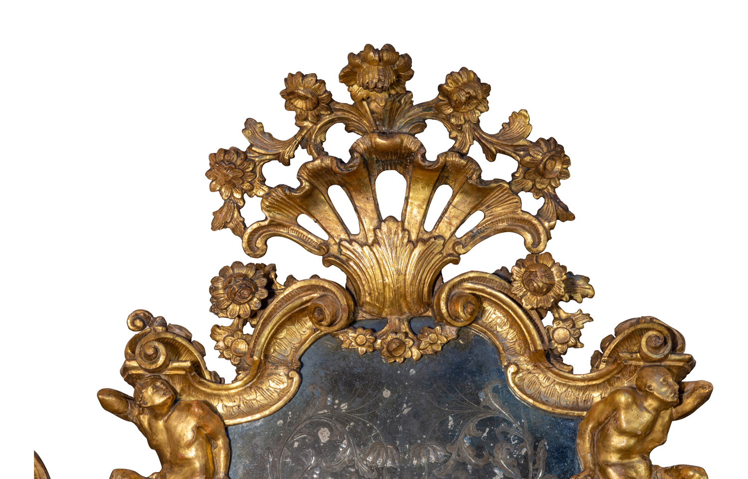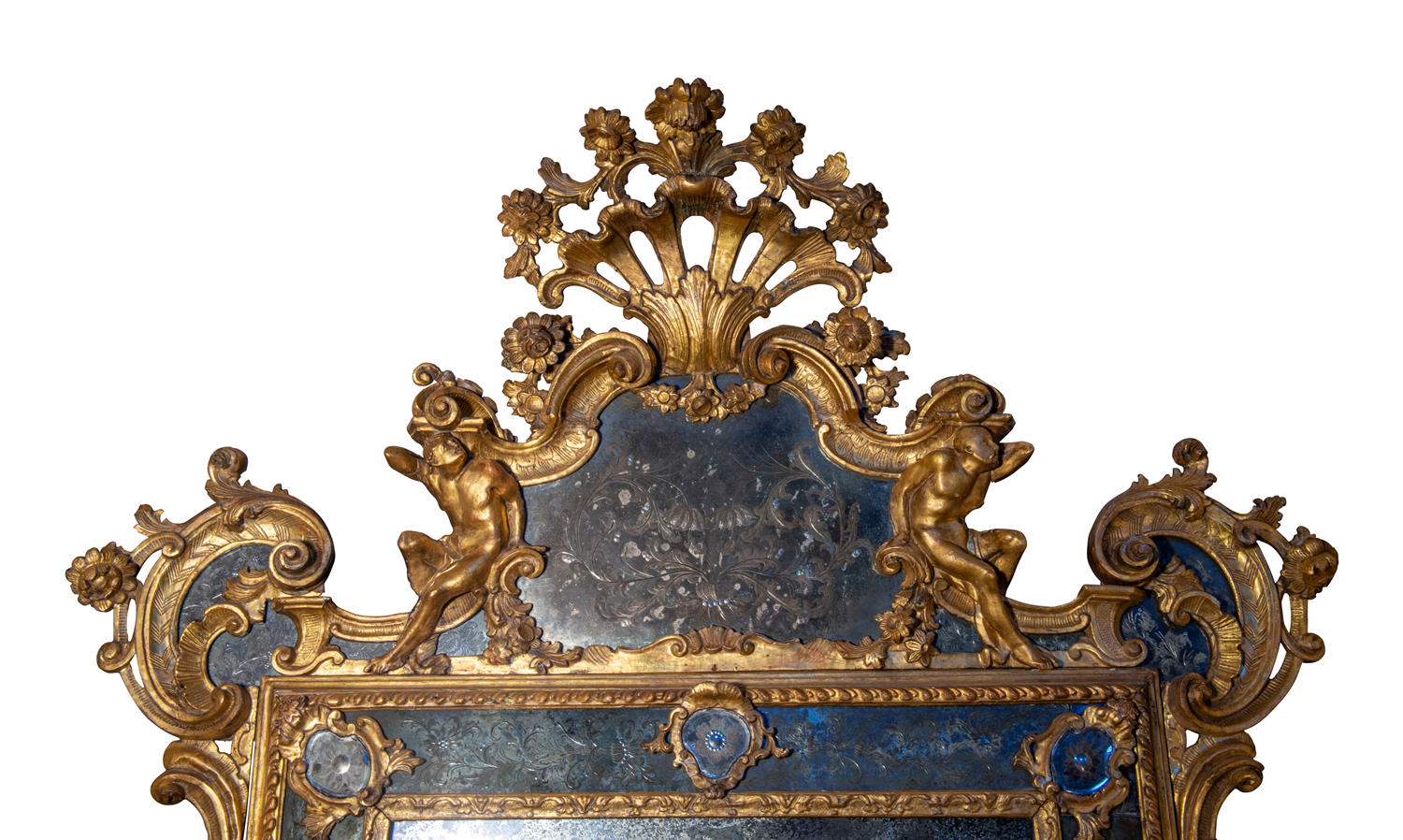Venezia (I quarto del XVIII secolo) Specchiera a doppia fascia di specchi incisi con inserti in cartigli dorati