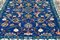 Campo, a fondo blu scurissimo, contraddistinto da un motivo herati, ingrandito di scala: al centro una rosetta racchiusa entro una losanga, circondata da quattro foglie arcuate, molto ben disegnate.