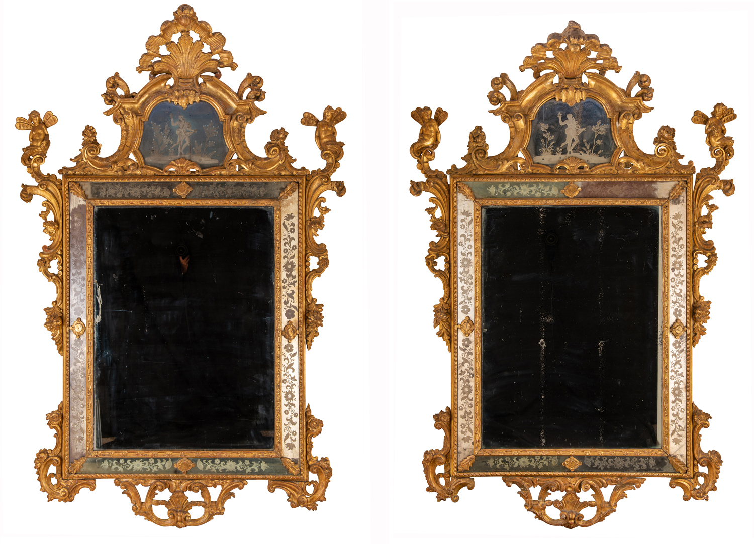 Venezia (I metà del XVIII secolo) Coppia di specchiere con tema di Flora e ninfe, 1730 ca.