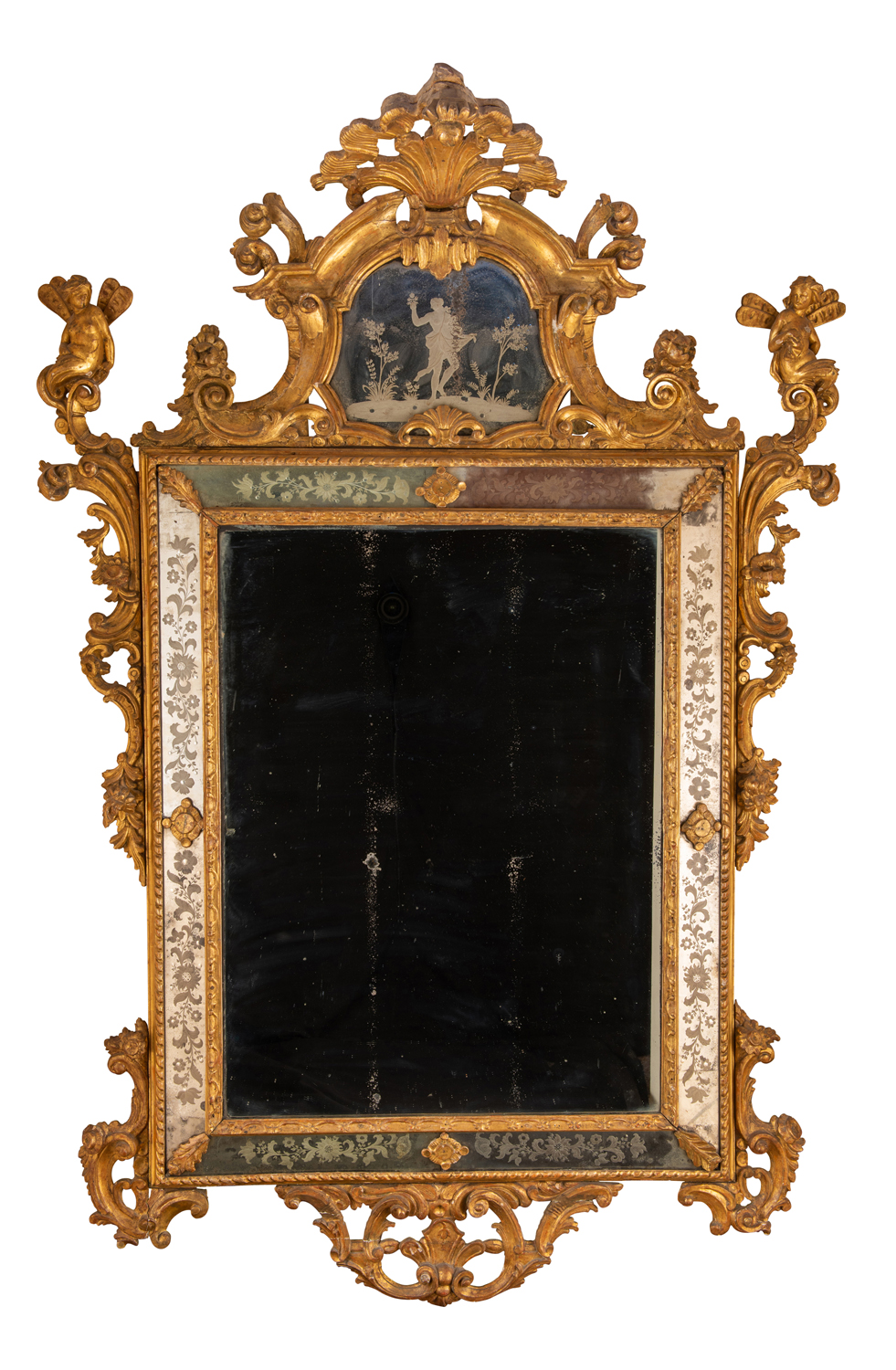 Bibliografia: per confronto, Giovanni Mariacher, "Specchiere italiane e cornici da specchio dal XVI al XIX secolo", Milano, 1963, tav. 64 (altro esemplare)