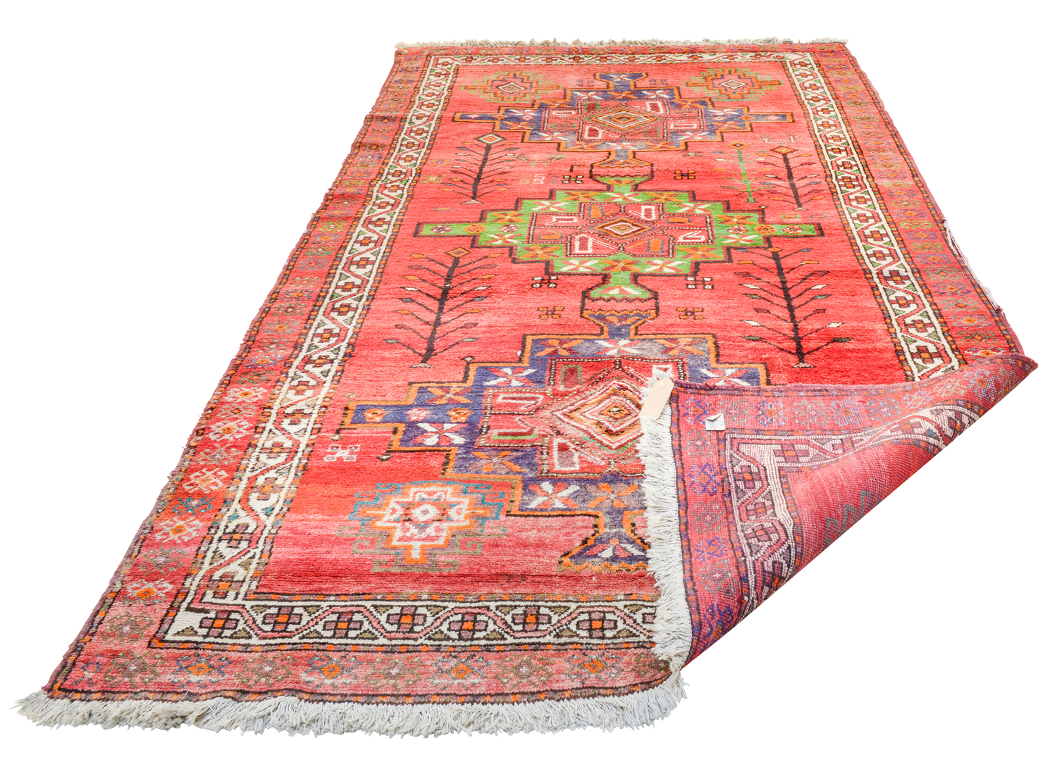 Tappeto di villaggio, molto rustico, ma con colori già chimici e di produzione tarda.