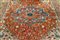 Esemplare di Heriz piuttosto classico, con al centro un piccolo ottagono azzurro dentro un medaglione dal profilo frastagliato di forma insolita. Il campo è rosso mattone con cantonali bianchi e forme floreali molto stilizzate. Insolita la bordura sia per il disegno, quasi astratto, sia per il colore, grigio verde.