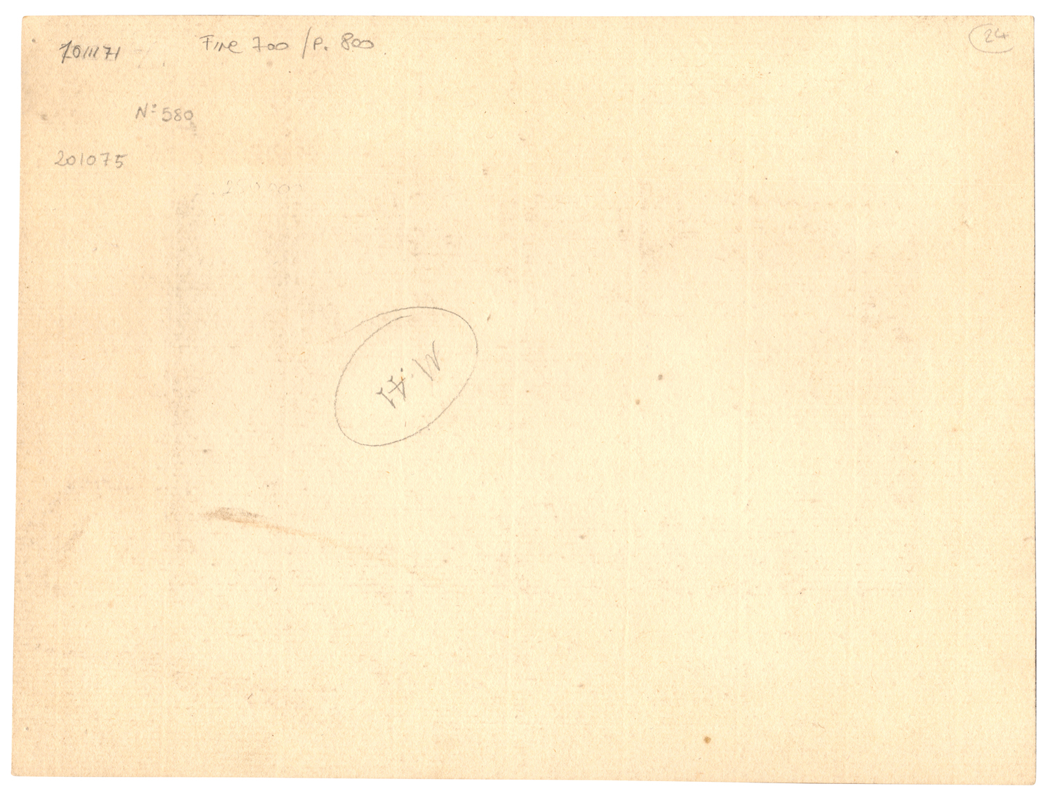 Elementi distintivi: al verso del passe-partout, le iscrizioni moderne a matita "7011171", "Fine 700/p. 800", "n°580", "201075", "n. 41"