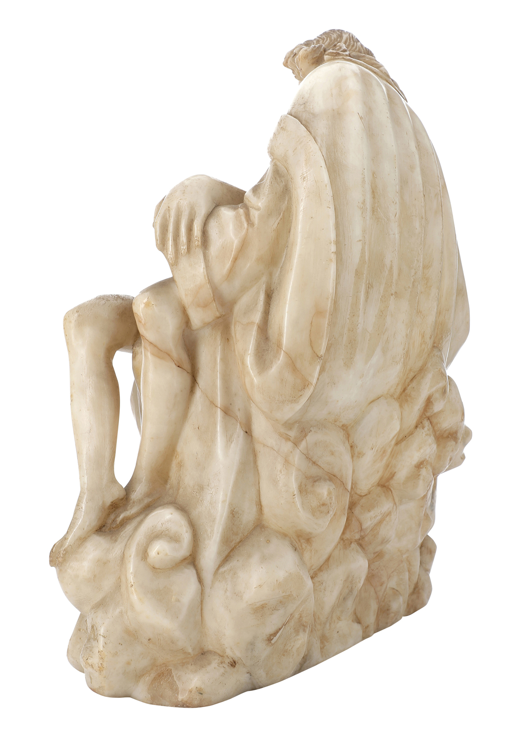 Come ci segnala Kim Woods, specialista di scultura tardo gotica, l'opera in asta presenta «un soggetto molto insolito. Il Compianto con la Vergine che tiene il Cristo morto sulle ginocchia è comune; le varie forme della Trinità sono comuni, ma un Compianto con Dio Padre che tiene Cristo sulle sue ginocchia è davvero molto insolito». La studiosa esamina l'opera in paragone ad un alabastro raffigurante San Marco attribuito alla cerchia dello scultore brabantino Jean Mone (c. 1500 – c. 1548) (vedi cfr. K. W. Woods, "Cut in alabaster", Brepols, 2018, p. 287, fig. 13), riconoscendo in entrambe le opere «l'impatto del manierismo di Anversa e anche del Rinascimento italiano». A giudizio di Woods, la scultura in asta «sembra appartenere allo stesso mondo della scultura in alabastro di Mechelen/Anversa del 1525-30 circa, anche se è difficile collocarla con maggiore precisione», poiché essa per stile non corrisponde in modo soddisfacente ai lavori noti dei principali nomi dell'intaglio dell'alabastro olandese della prima metà del XVI secolo: Jean Mone, Conrad Meit (1480-1551), Cornelis Floris (1514-1575), Willem van den Broecke (1530-1579), Guyot de Beaugrant (1500-1549 circa), Jacques du Broecke (1505 circa - 1584 circa). Né si riscontrano buoni parallelismi in Spagna, dove lavoravano molti intagliatori olandesi. All'esito della ricerca, tuttavia, la studiosa è ancora «propensa a scegliere i Paesi Bassi», come luogo di origine dell'opera (comunicazione del 30 novembre 2020).
