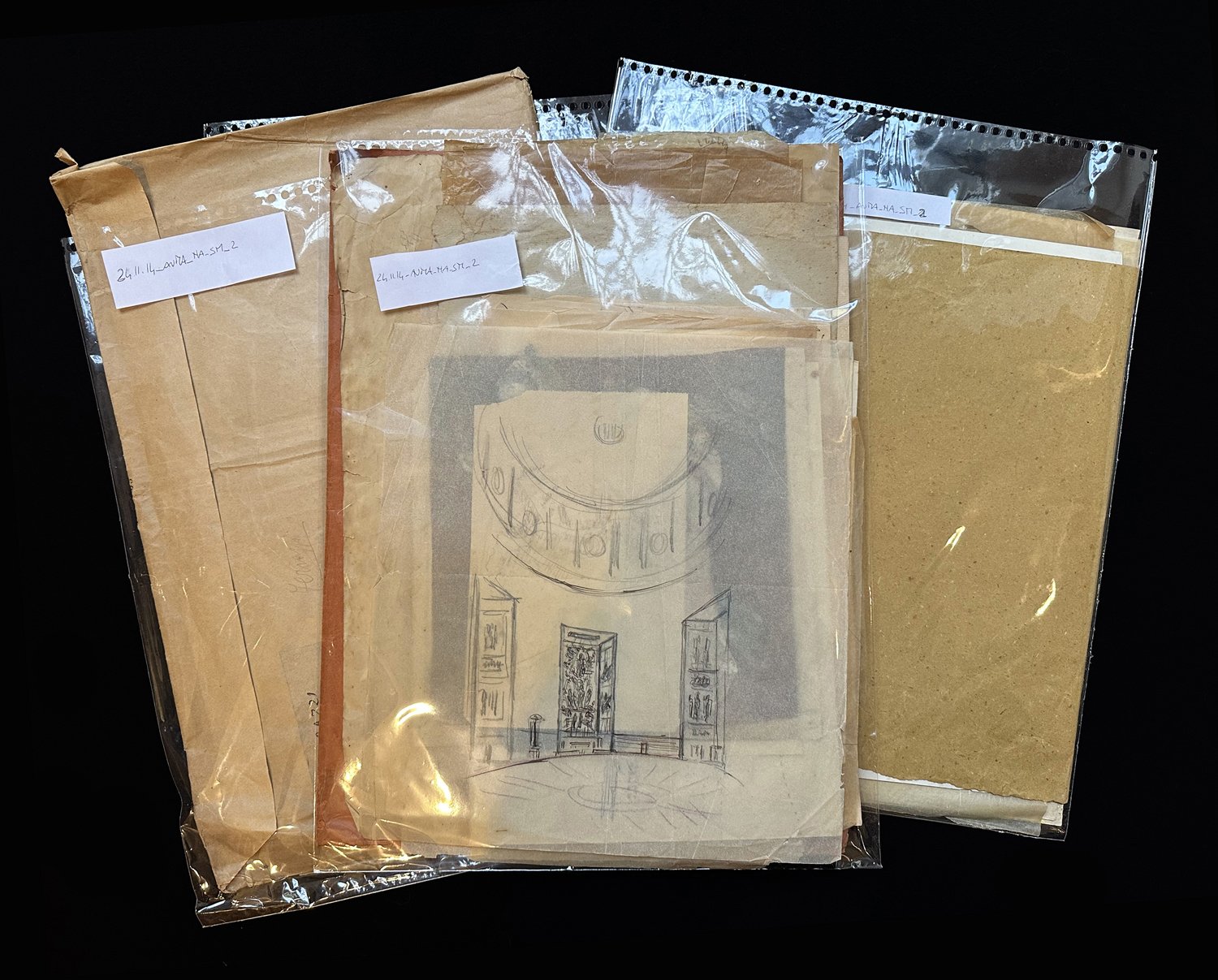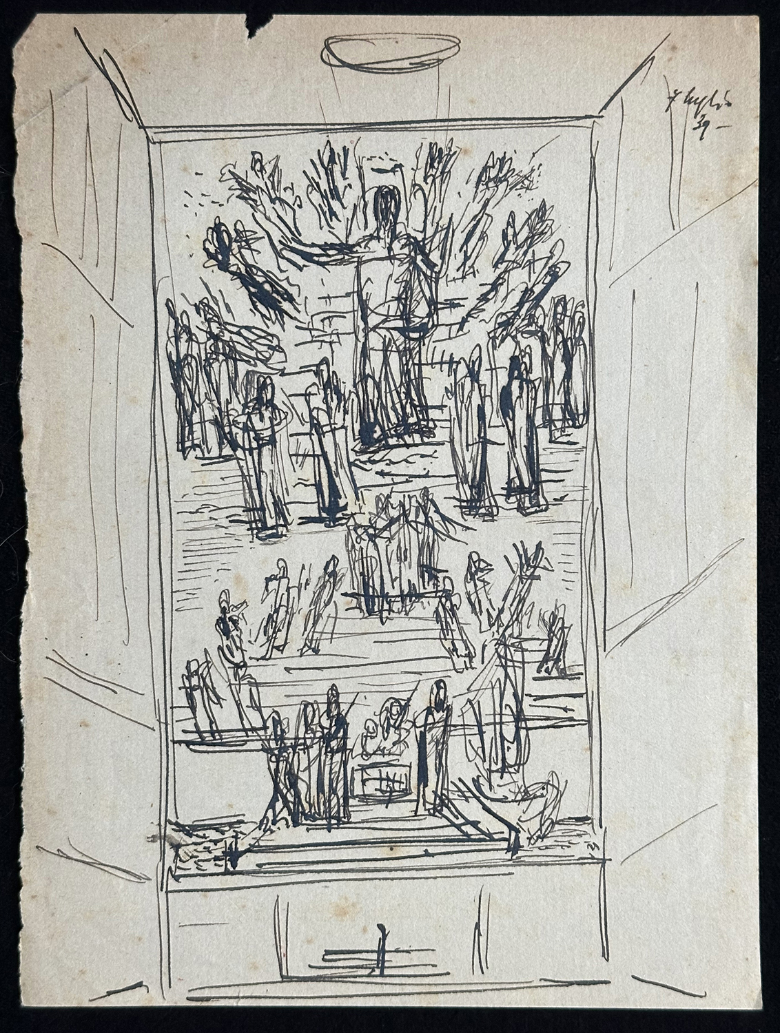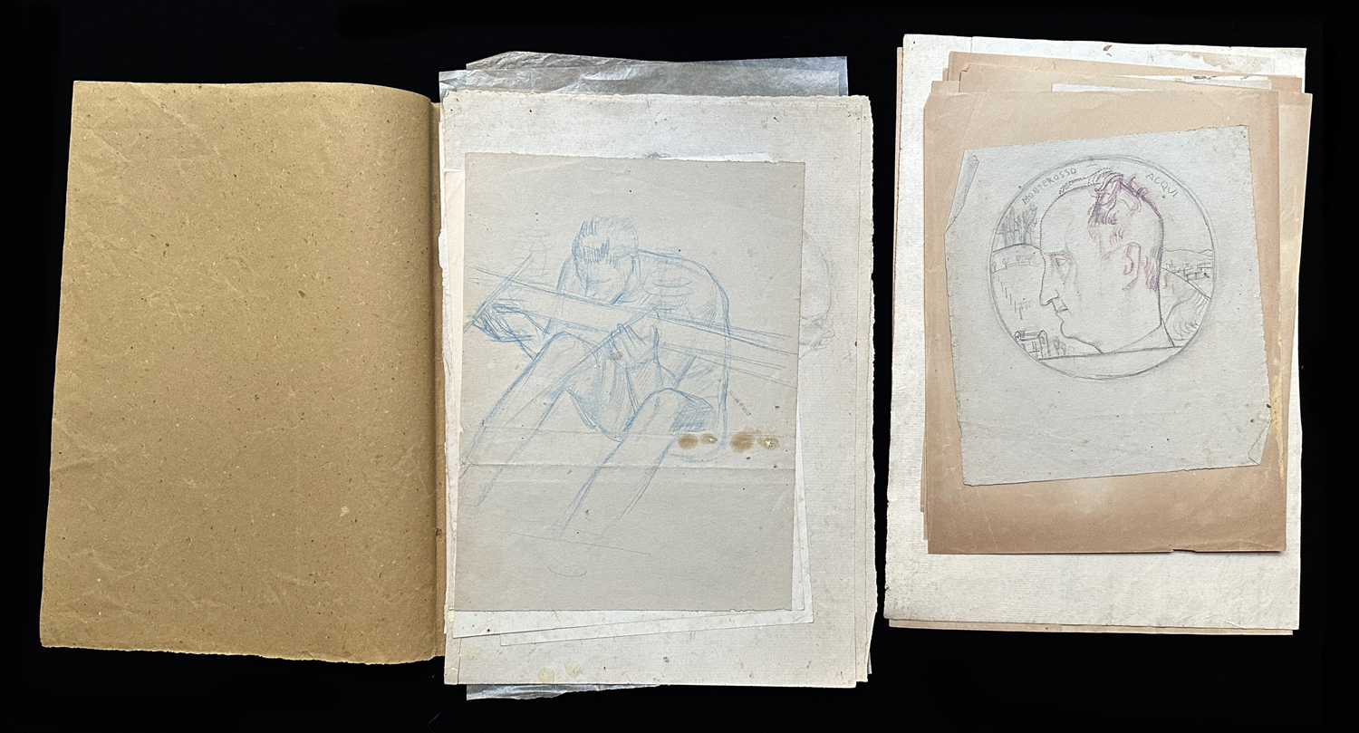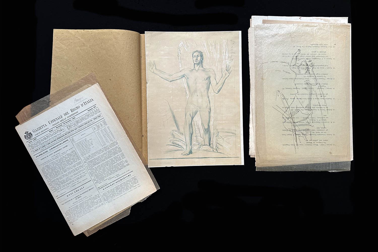 Selezione di appunti grafici sia di invenzione sia di natura progettuale. I fogli provengono dal patrimonio di Carlo Castria (1883-1970), storico legale di Ferruccio Ferrazzi e collezionista appassionato, soprattutto di arte moderna.