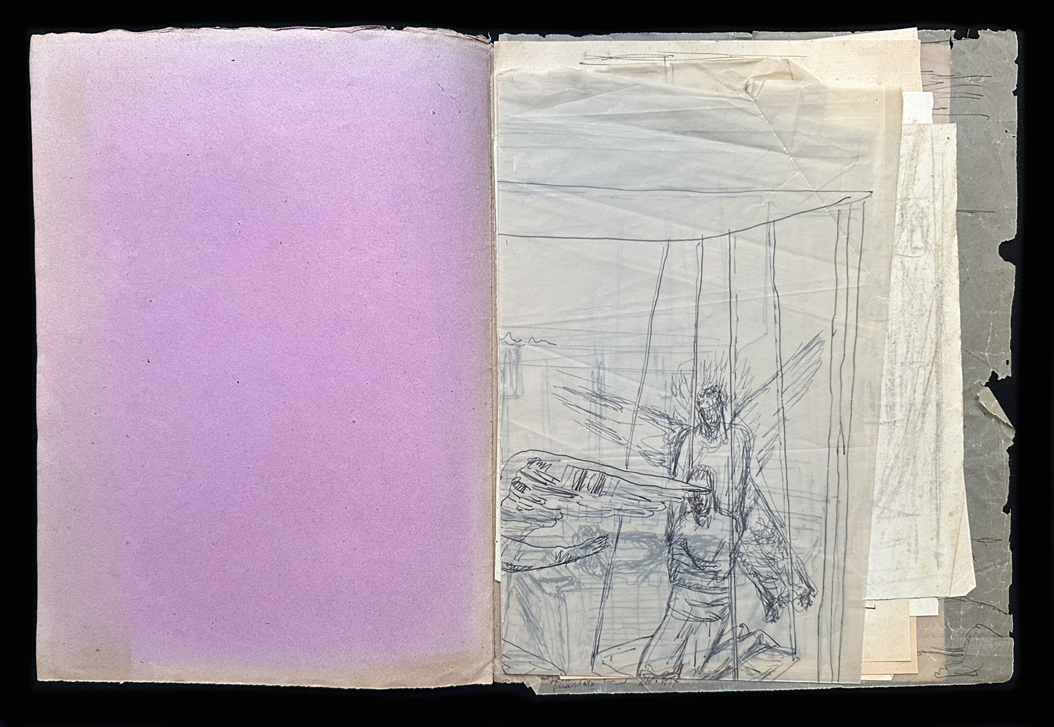 matita, inchiostro, tempera e tecnica mista su carta, carta velina e cartoncino