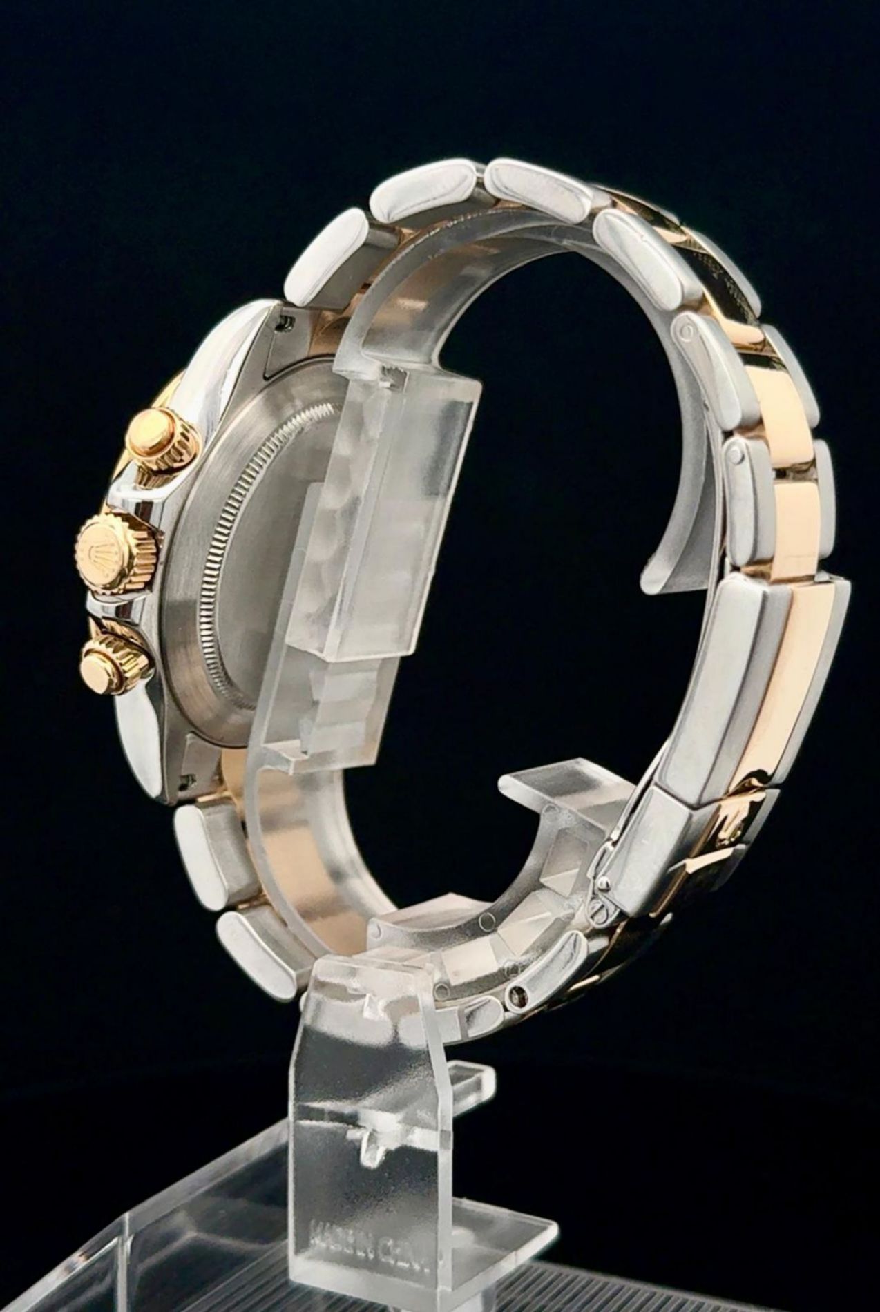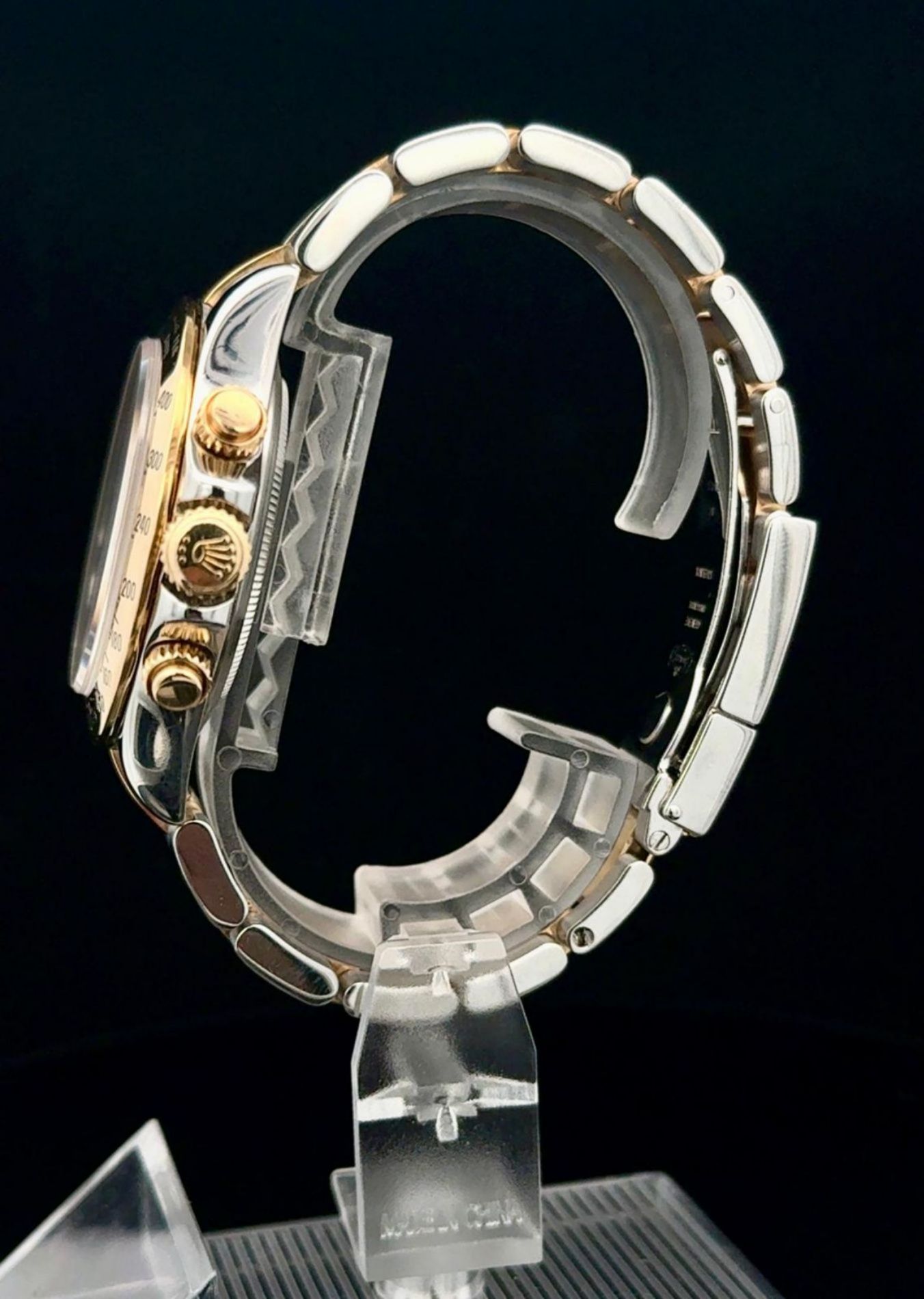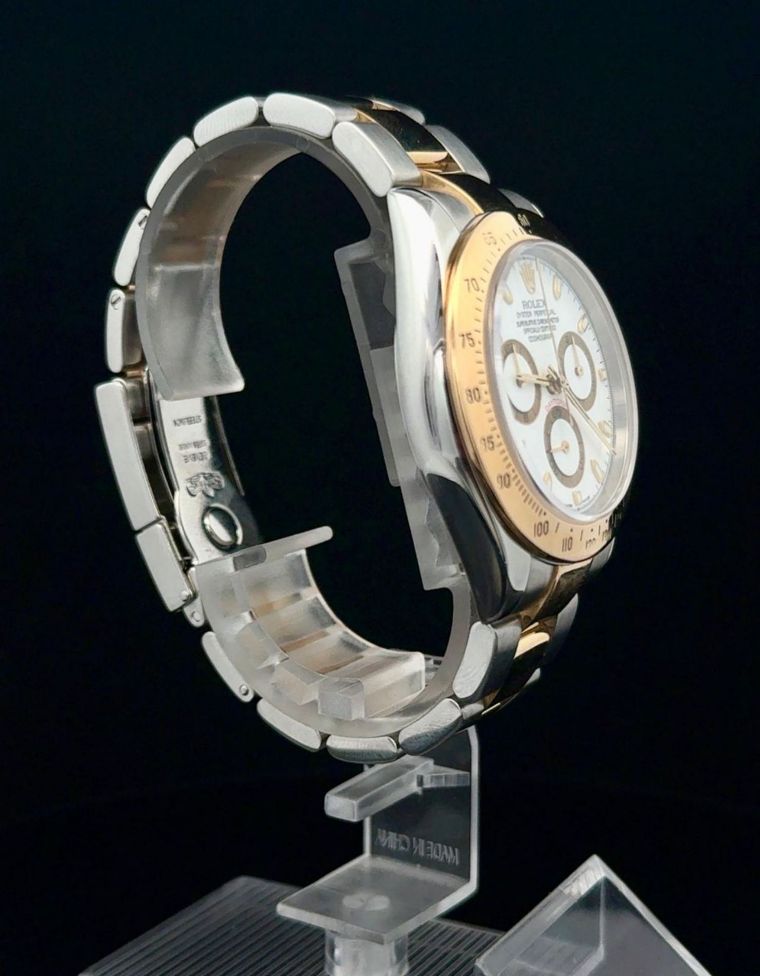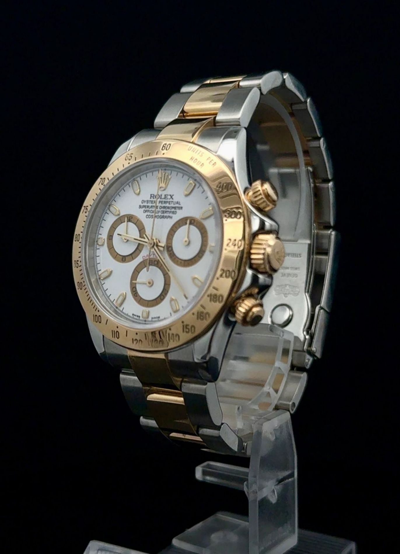 Marca Rolex Modello (Orologio) Daytona Numero di referenza 116523 Carica Automatico Materiale della cassa Oro/Acciaio Materiale cinturino Oro/acciaio Anni 2001/2005 documenti originali Rolex, no box, la scatola viene utilizzata solo per fotografie non è in vendita Calibro Carica Automatico Cassa Materiale della cassa Oro/Acciaio Diametro 40 mm Impermeabile 10 ATM Materiale lunetta Oro giallo Vetro Vetro zaffiro Cinturino Materiale cinturino Oro/acciaio Colore cinturino Oro/acciaio Chiusura Déployante Materiale chiusura Oro/Acciaio Funzioni Cronografo
