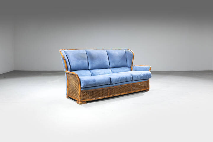 Struttura in bambù e rattan, imbottitura rivestita in tessuto.