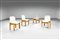 Struttura in legno, seduta e schienale imbottiti rivestiti in tessuto.