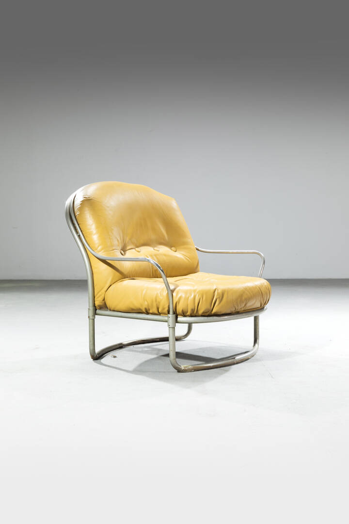 Struttura tubolare in acciaio, imbottitura rivestita in pelle.