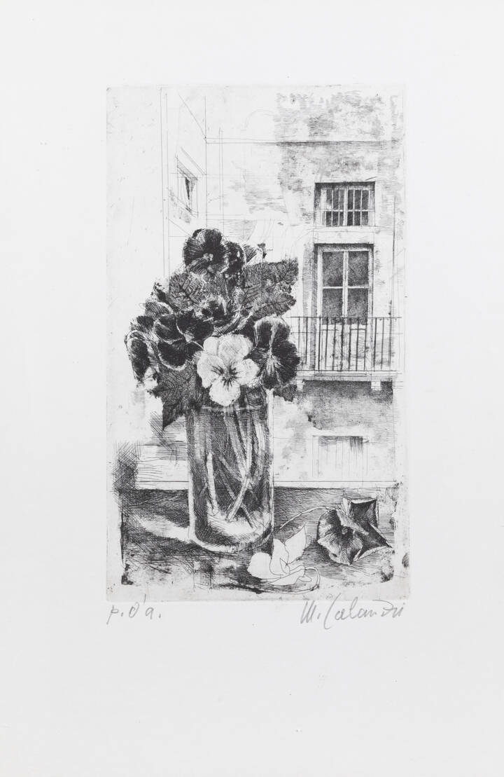 MARIO CALANDRI<BR>Torino 1914 - 1993<BR>"Le viole" 1980