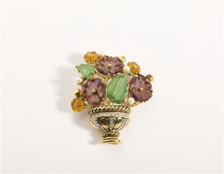 L'OFFICIEL Spilla bijoux . . . Spilla bijoux Officel con pietre dure e vetro. Struttura in argento.