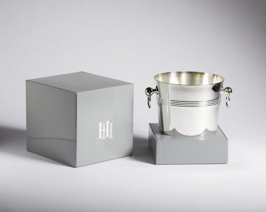 [Nessun Autore] Secchiello portaghiaccio. Silver plate.. Cm 19,00 x 21,50. Secchiello portaghiaccio argentato compreso di scatola originale.
