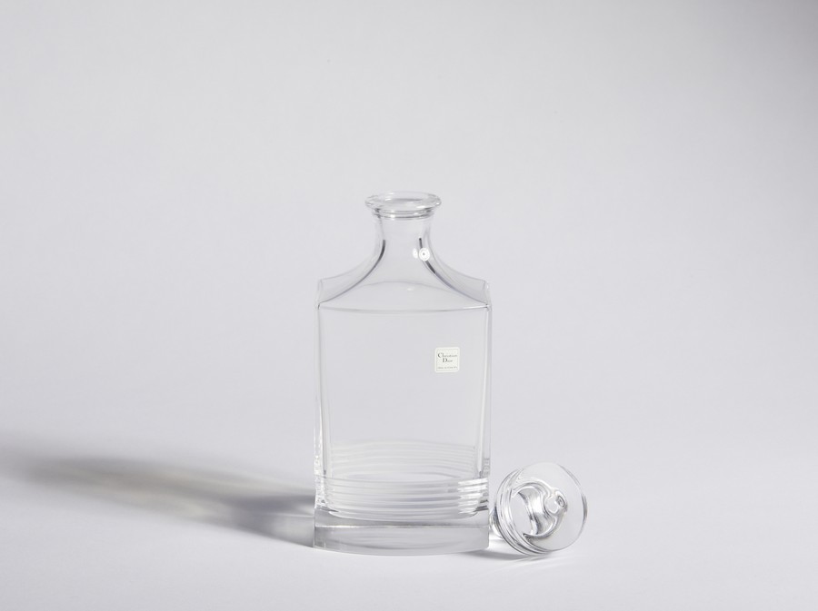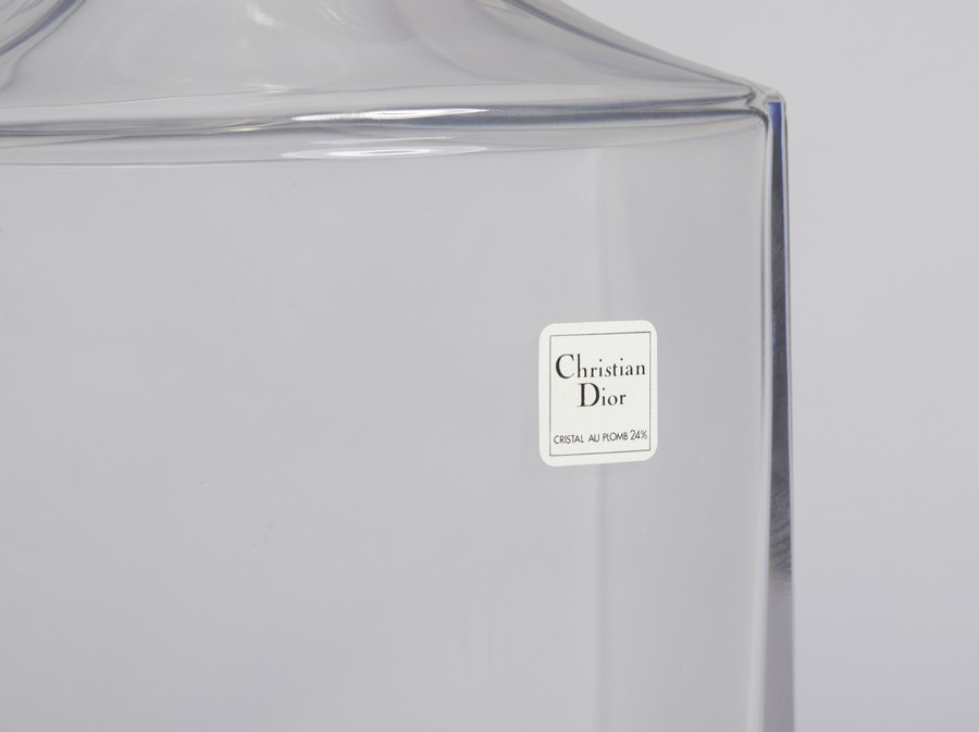 DIOR CHRISTIAN (1905 - 1957) Bottiglia Dior. Cristallo. Cm 10,50 x 23,00. Bottiglia Dior in cristallo con etichetta sul fronte.