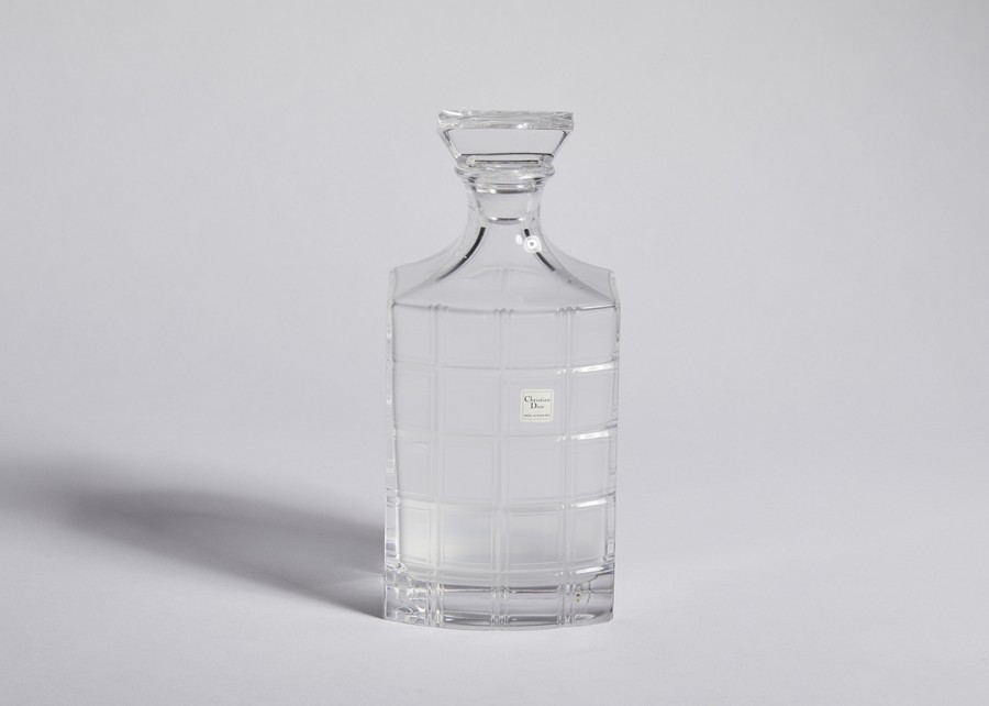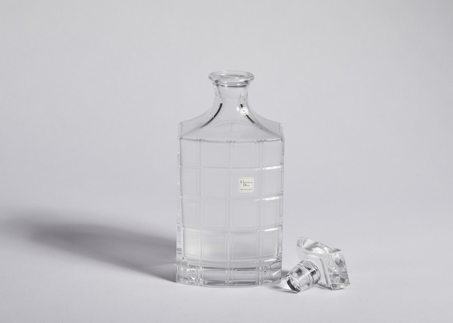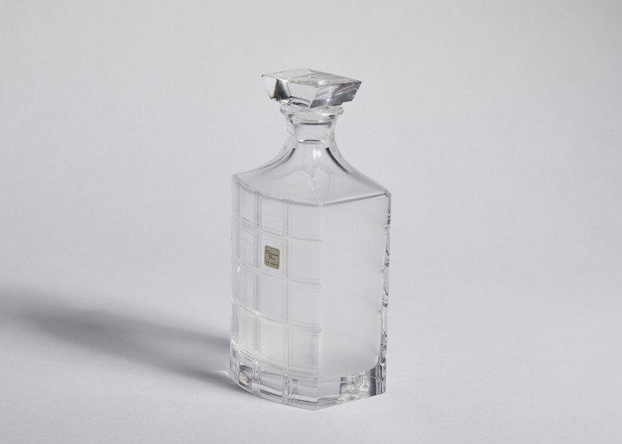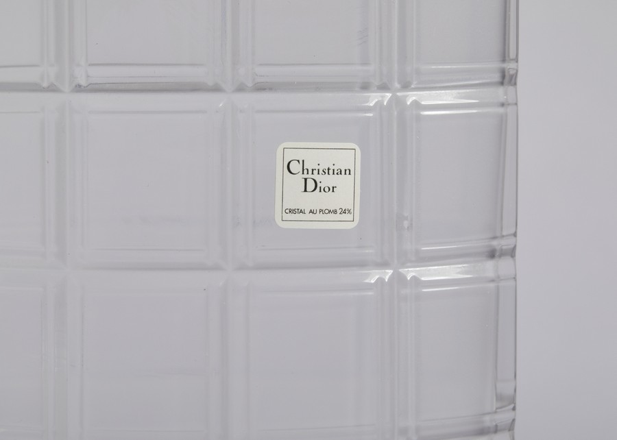 DIOR CHRISTIAN (1905 - 1957) Bottiglia Dior. Cristallo. Cm 10,50 x 23,00. Bottiglia Dior in cristallo con etichetta sul fronte e logo alla base