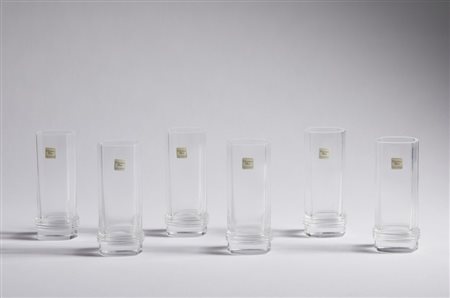 DIOR CHRISTIAN (1905 - 1957) Set bicchieri Dior. Vetro.. Cm 5,50 x 15,00. Set di sei bicchieri Dior in vetro con firma incisa al retro della base, etichetta sul fronte.