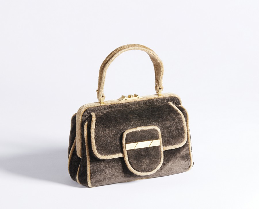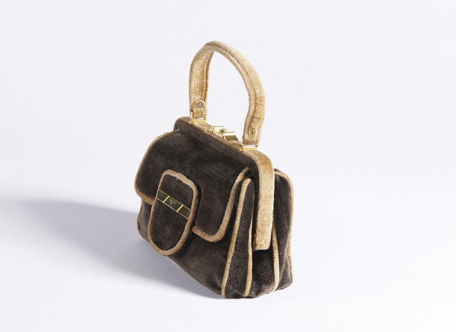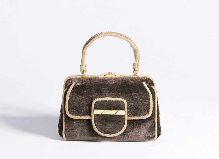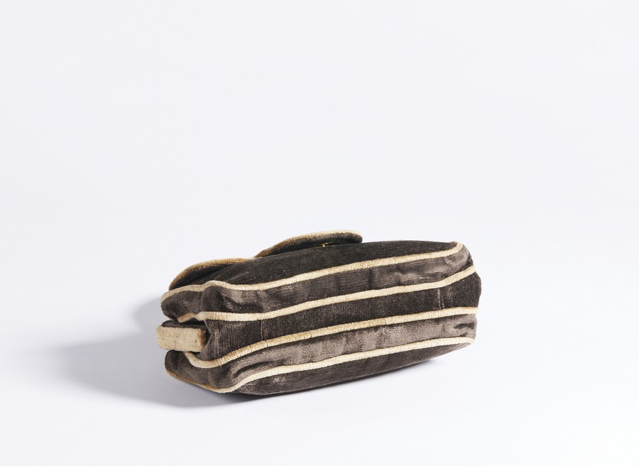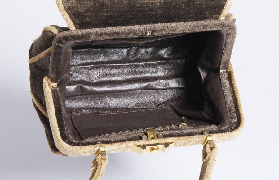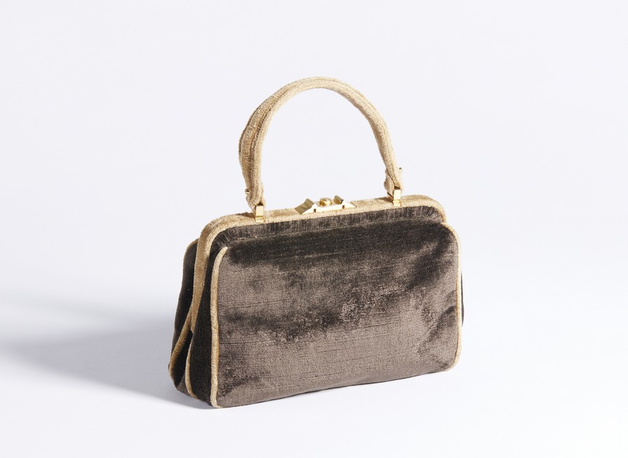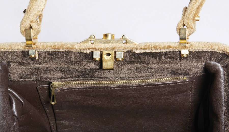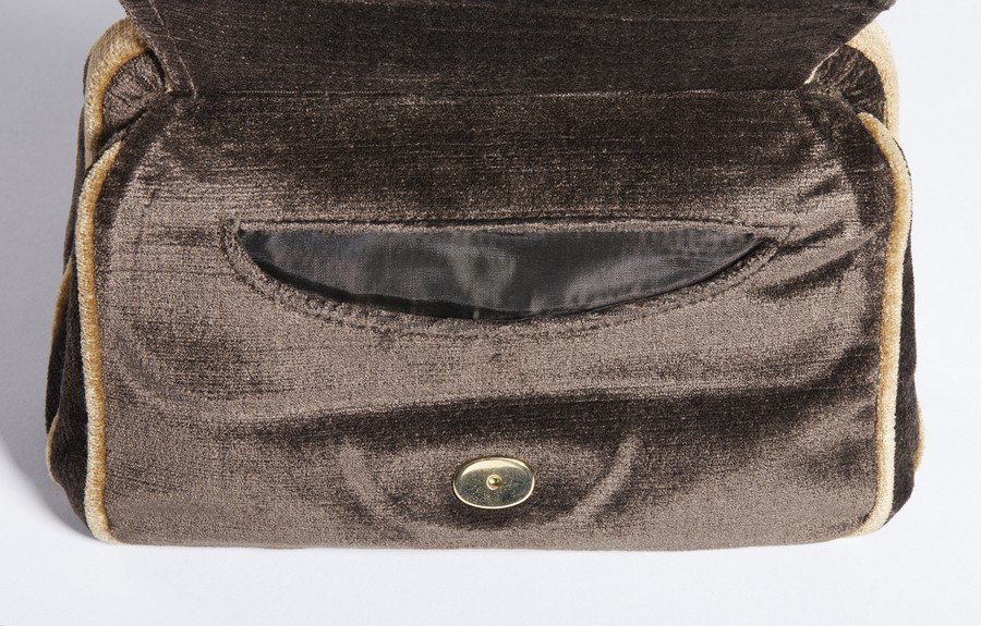 AUTORE IGNOTO Borsa . Velluto. Cm 23,50 x 16,00 x 8,50. Borsa a mano in velluto, manico in velluto, chiusura a clip e tasca frontale.