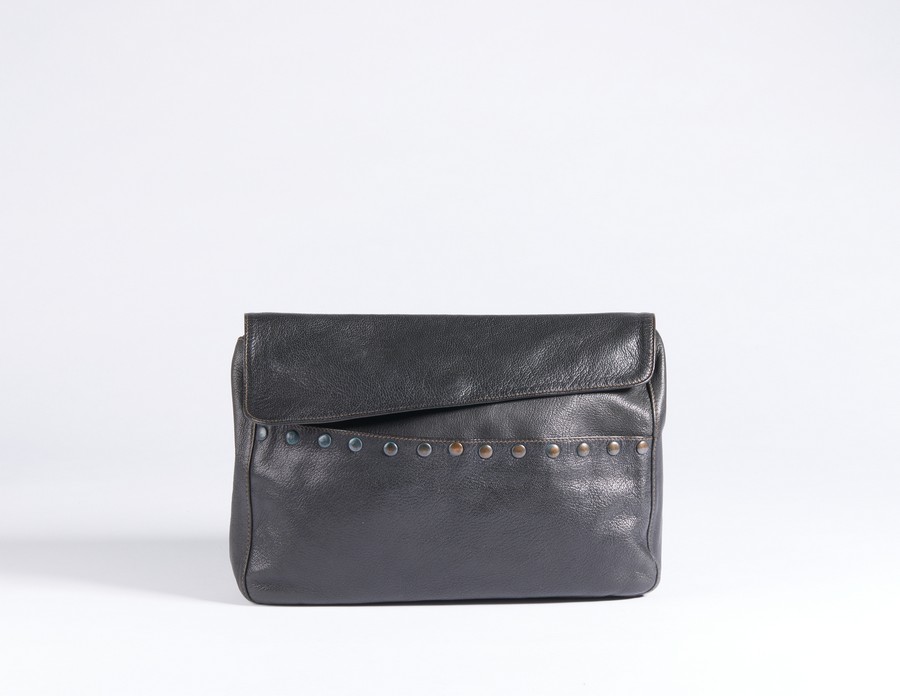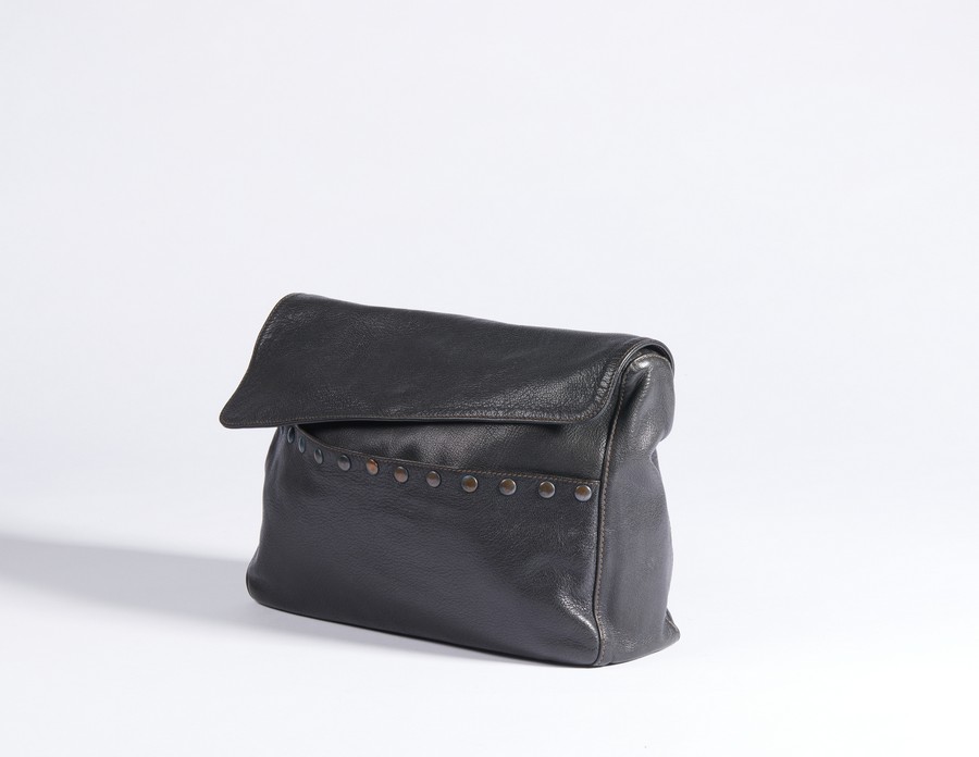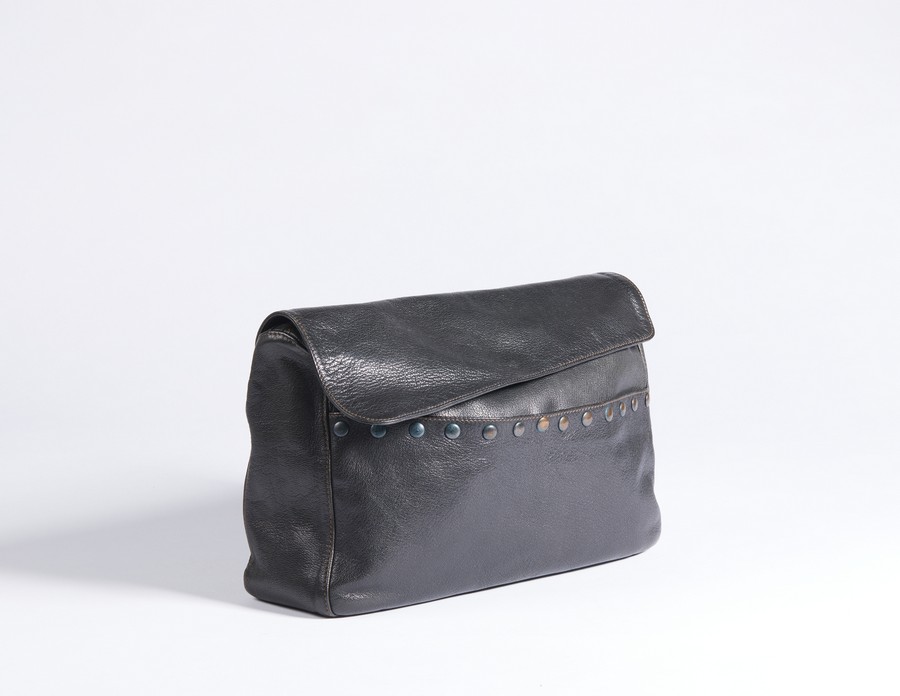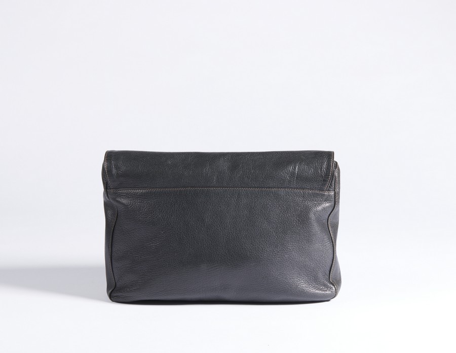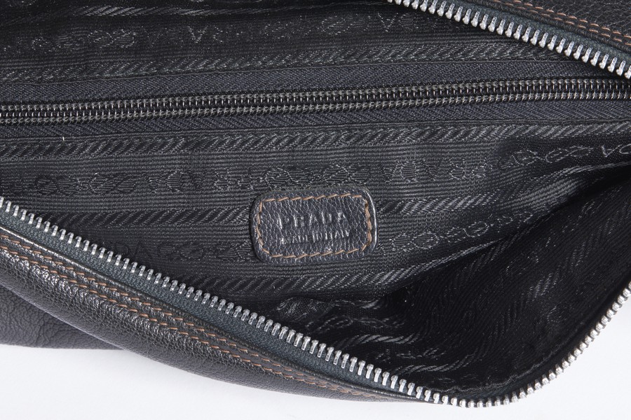 PRADA MILANO borsa a mano nera. Pelle. Cm 32,00 x 24,00 x 9,00. Borsa a mano Prada in pelle nera, chiusura a clip, tasca piatta sul retro. Interno in tela con tasca piatta ed etichetta logata.