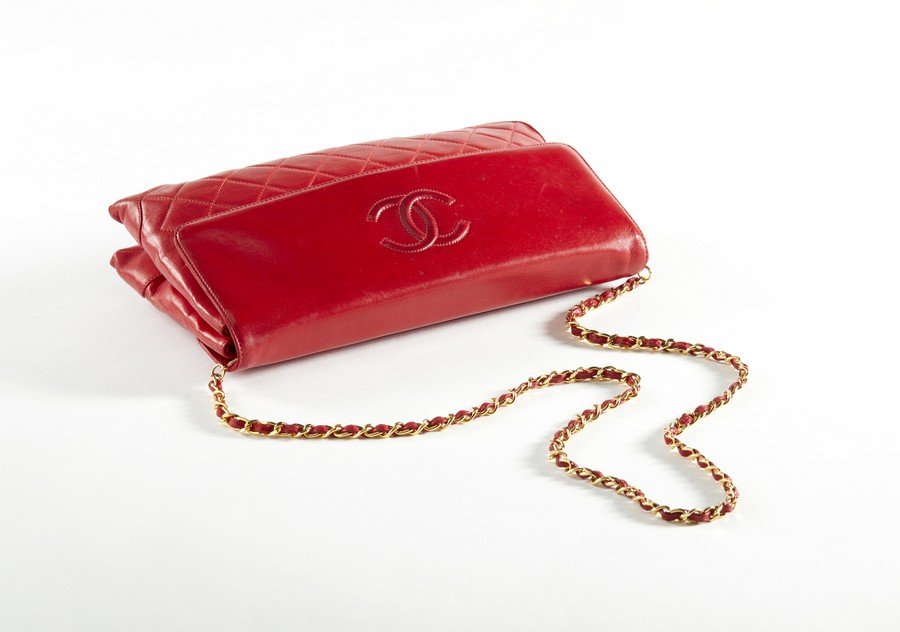 CHANEL Borsa a tracolla. Pelle. Cm 34,00 x 16,50 x 5,00. Borsa a tracolla in pelle rossa.