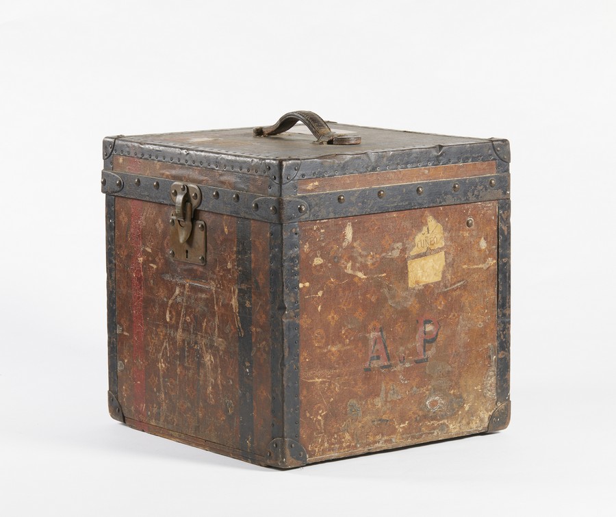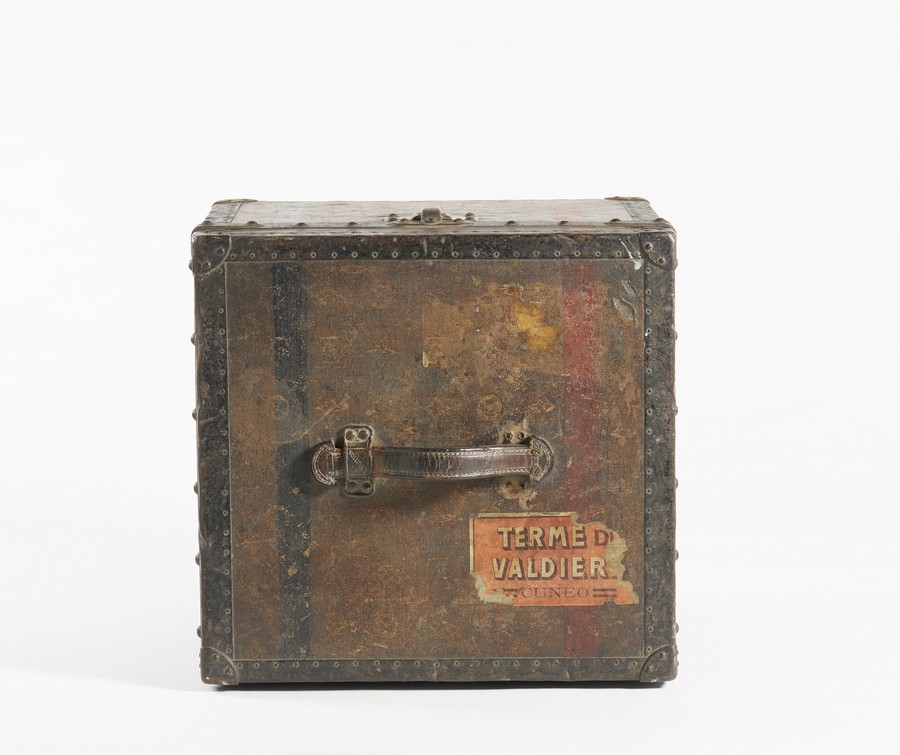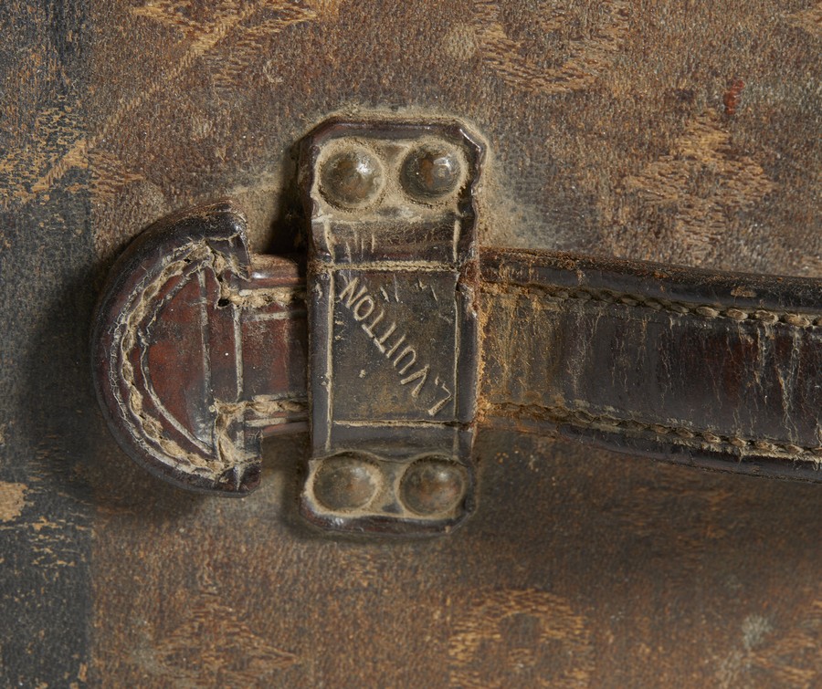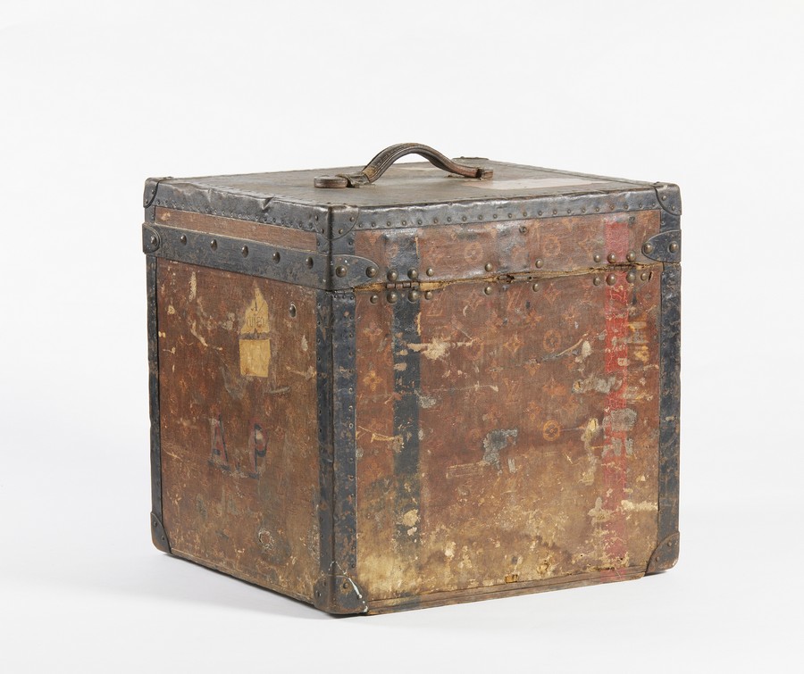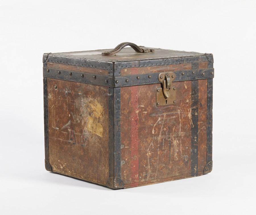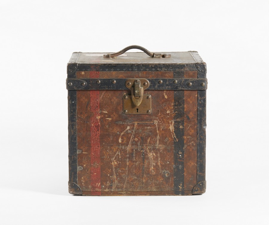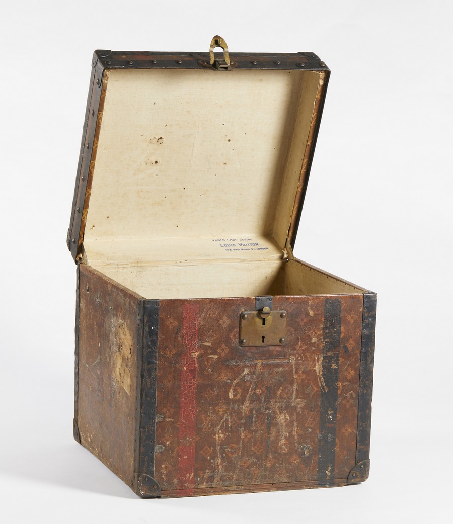 VUITTON LOUIS BAULE. . Cm 40,50 x 41,50 x 42,50. Baule da viaggio monogram, inserti in pelle e hardware frontale.