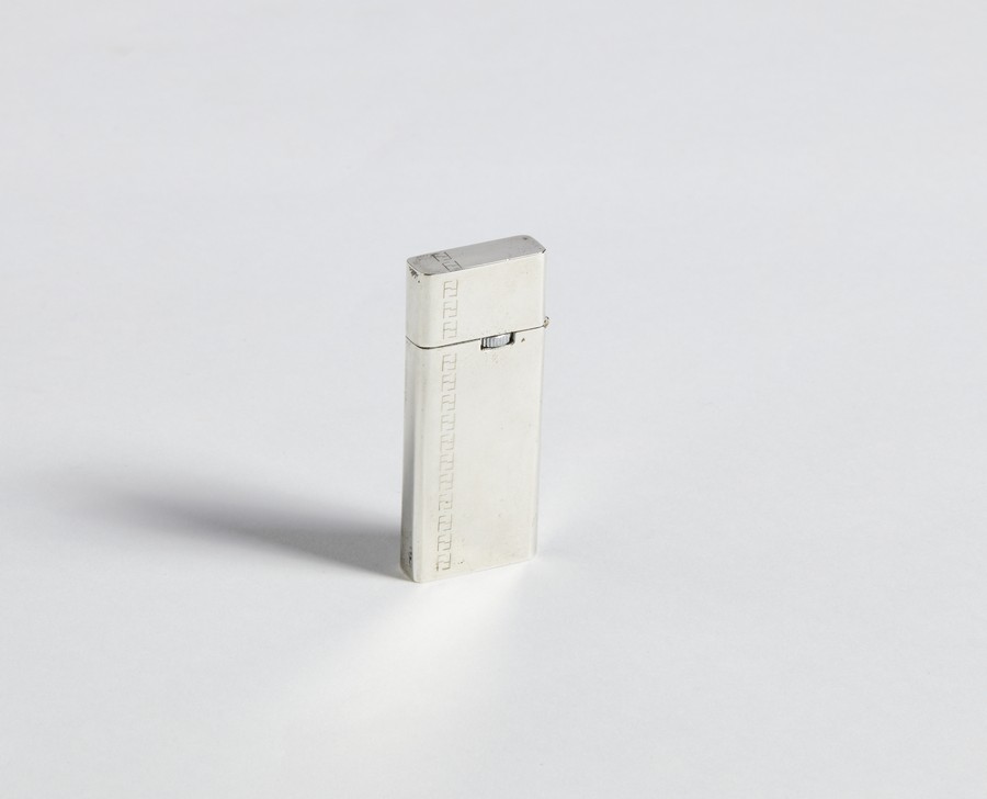FENDI Accendino. Metallo argentato. Cm 2,50 x 6,00 x 1,00. Timbro al retro Emerald, 309.