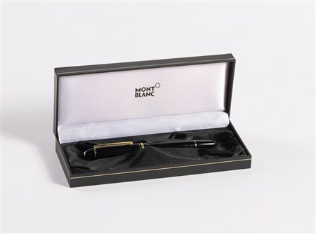 MONTBLANC Penna stilografica Meisterstuck . Resina e oro. . Penna stilografica Meisterstuck con caricatore a stantuffo. Custodia e inziali.