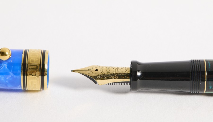 AURORA Penna modello mare. . . Penna stilografica a pistone Aurora modello mare, pennino oro massiccio F18K. Compresa di boccetta d'inchiostro.