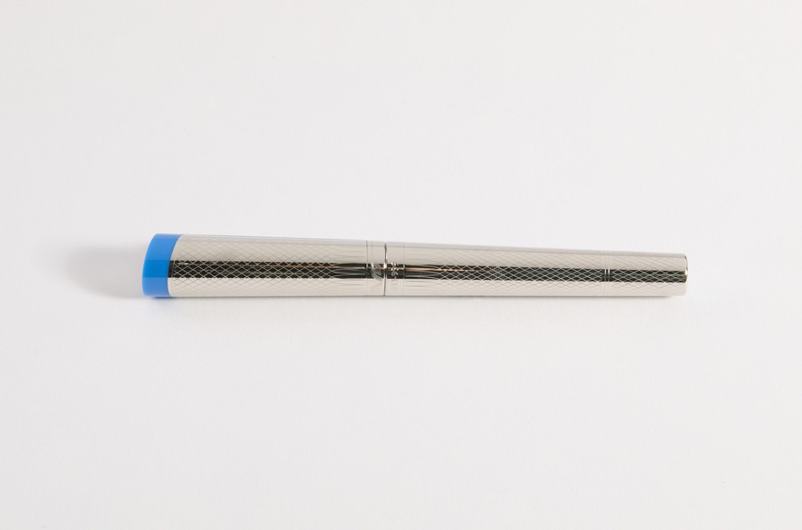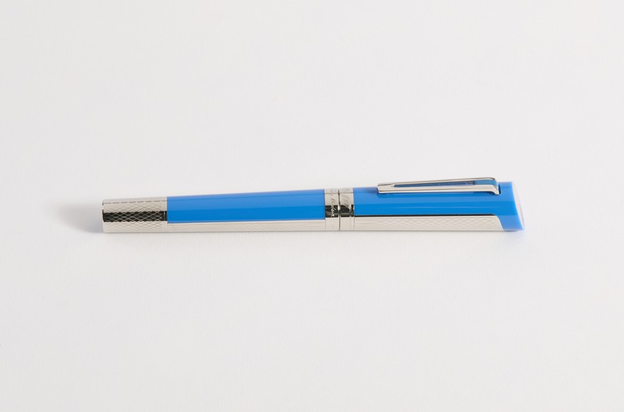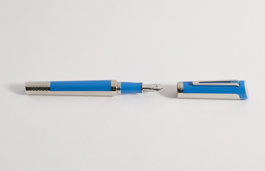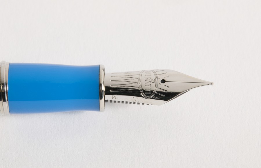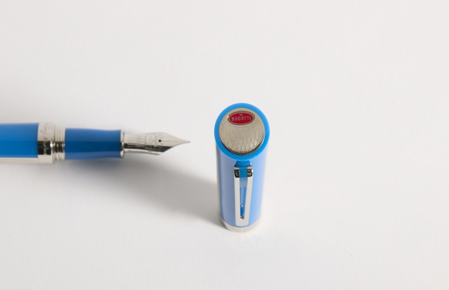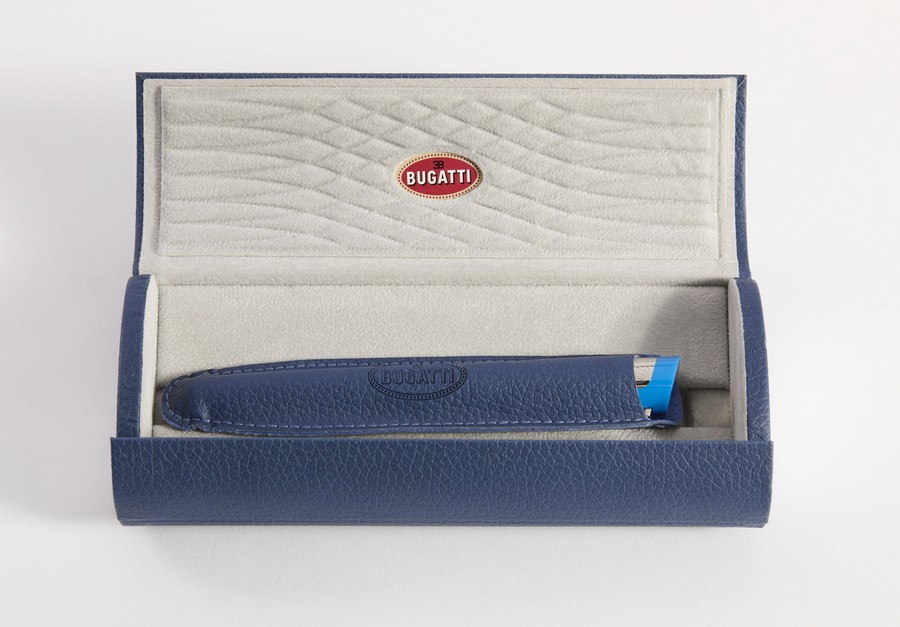 BUGATTI Penna stilografica Pur San Duetone. . . Penna stilografica Bugatti blu indigo e argento, pennino 18k. Esemplare 33/999.