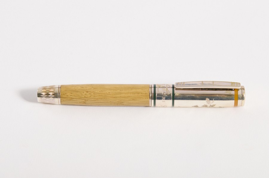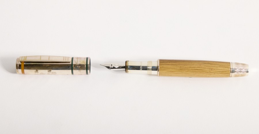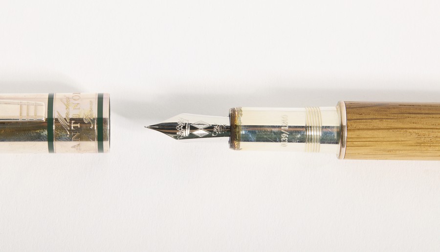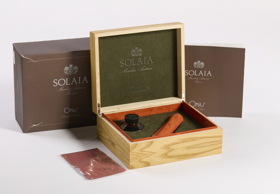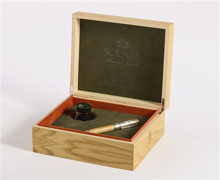 OMAS Penna stilografica modello SOLAIA. Argento. . Penna stilografica Omas in legno, pennino 18k rodiato con incisione del logo Omas e della corona e dei rombi dello stemma Marchesi Antinori.