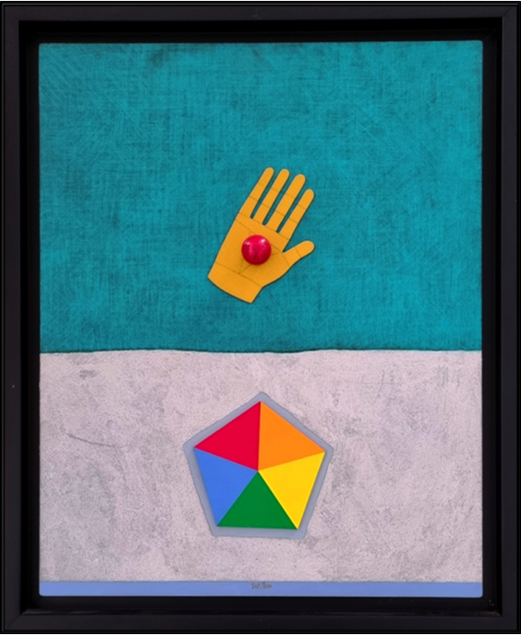 DEL PEZZO LUCIO Napoli 1933 - Milano 2020 "Una nota dal profondo" Collage, acrilico, sabbia e smalto su legno cm 60x75, degli anni '90. Sul retro reca titolo, firma, tecnica e misure. Autentica su foto a cura del Maestro.