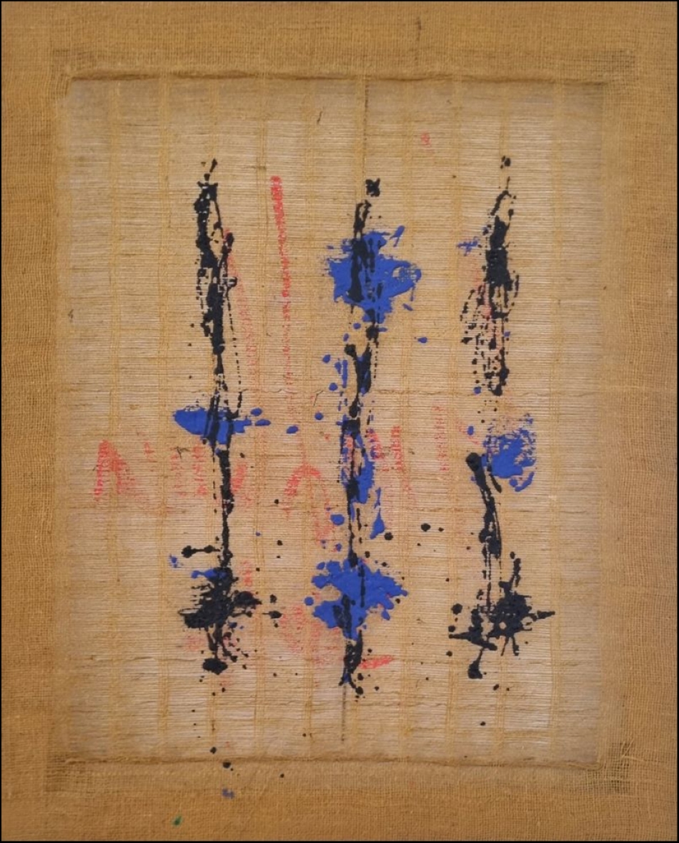 EMBLEMA SALVATORE Terzigno 1929 - 2006 "Senza titolo" Terre colorate su tela di juta cm 80x100, del 2004. Al verso firma, data ed etichetta di provenienza. Autentica su foto con numero di archivio, a cura del Maestro.