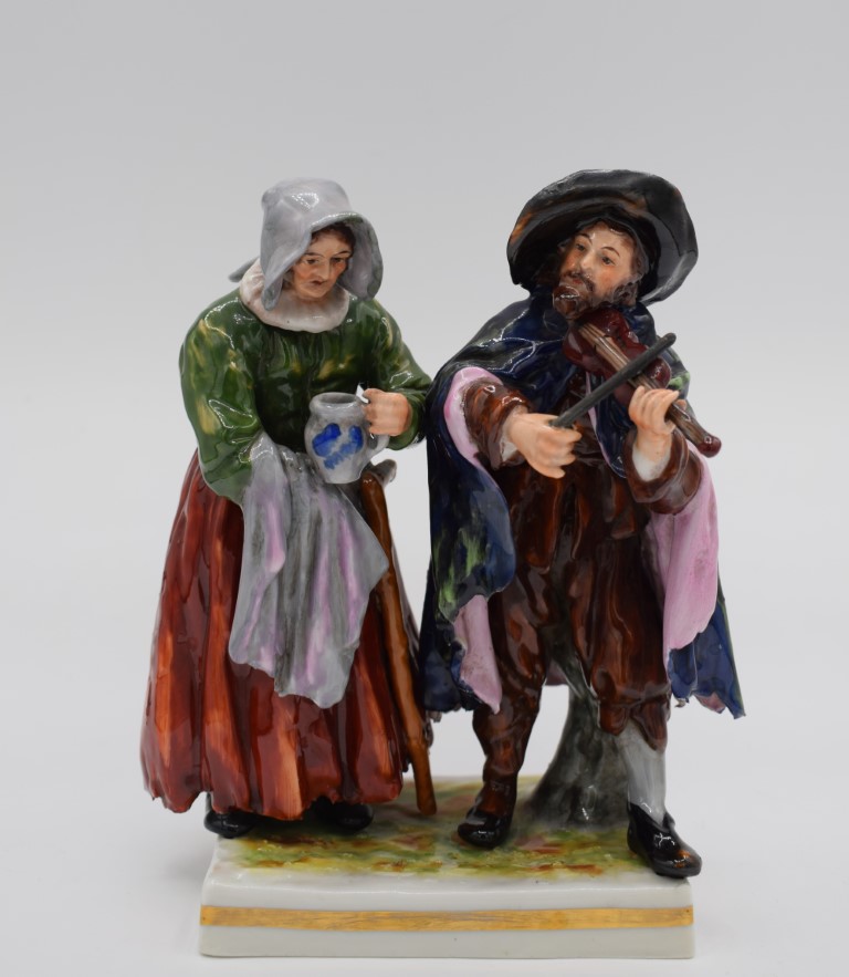 Capodimonte, raffigurante un suonatore di violino in abiti del Settecento ed una donna con un boccale