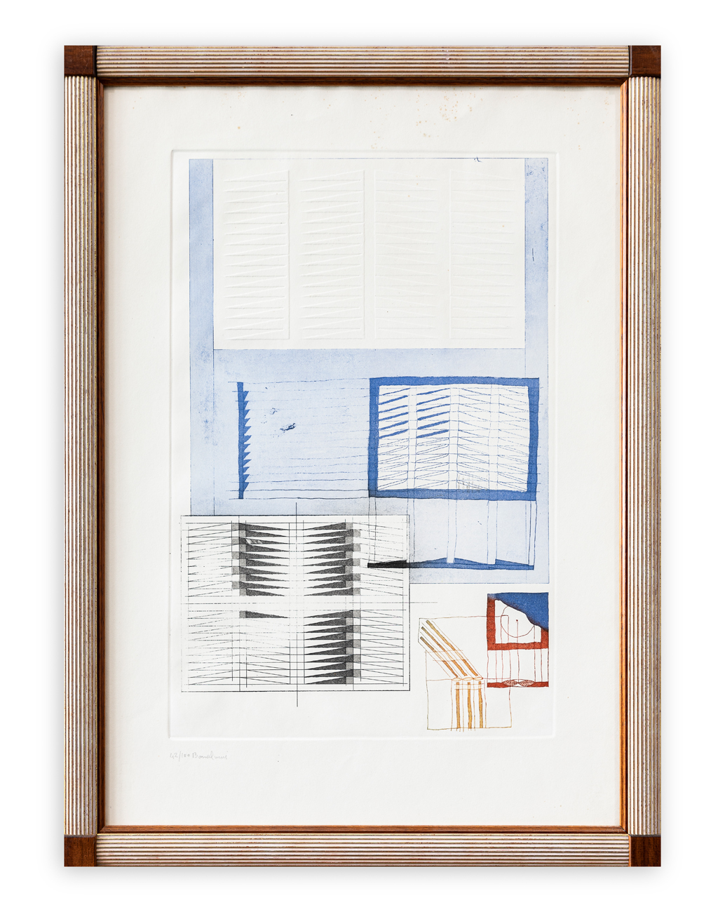 Opera originariamente parte della cartella realizzata per il volume 'Arte e fotografia' di Nino Lo Duca con grafiche di Getulio Alviani, Enrico Baj, Agostino Bonalumi, Andrea Cascella, Enrico Castellani, Alik Cavaliere, Pietro Consagra, Lucio Del Pezzo, Piero Dorazio, Gianni Dova, Ugo Nespolo, Mario Nigro, Achille Perilli, Michelangelo Pistoletto, Arnaldo Pomodoro, Carlo Ramous, Mario Rossello, Mimmo Rotella, Emilio Scanavino, Paolo Schiavocampo