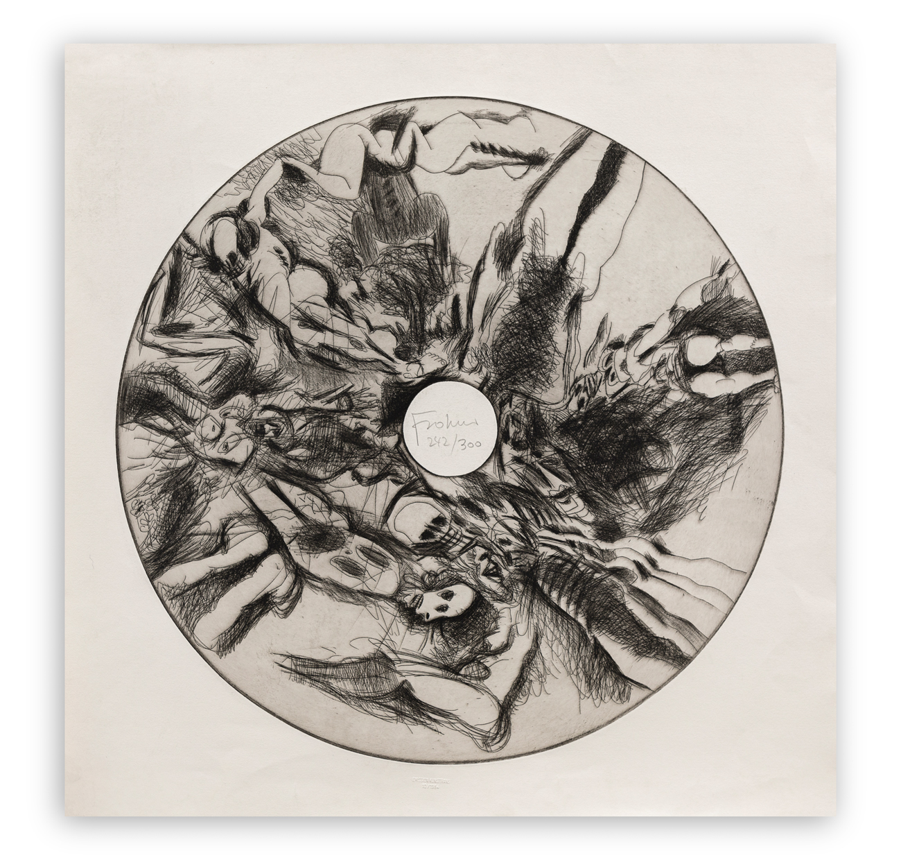 Firma e numerazione (Esemplare 242/300) a matita al fronte