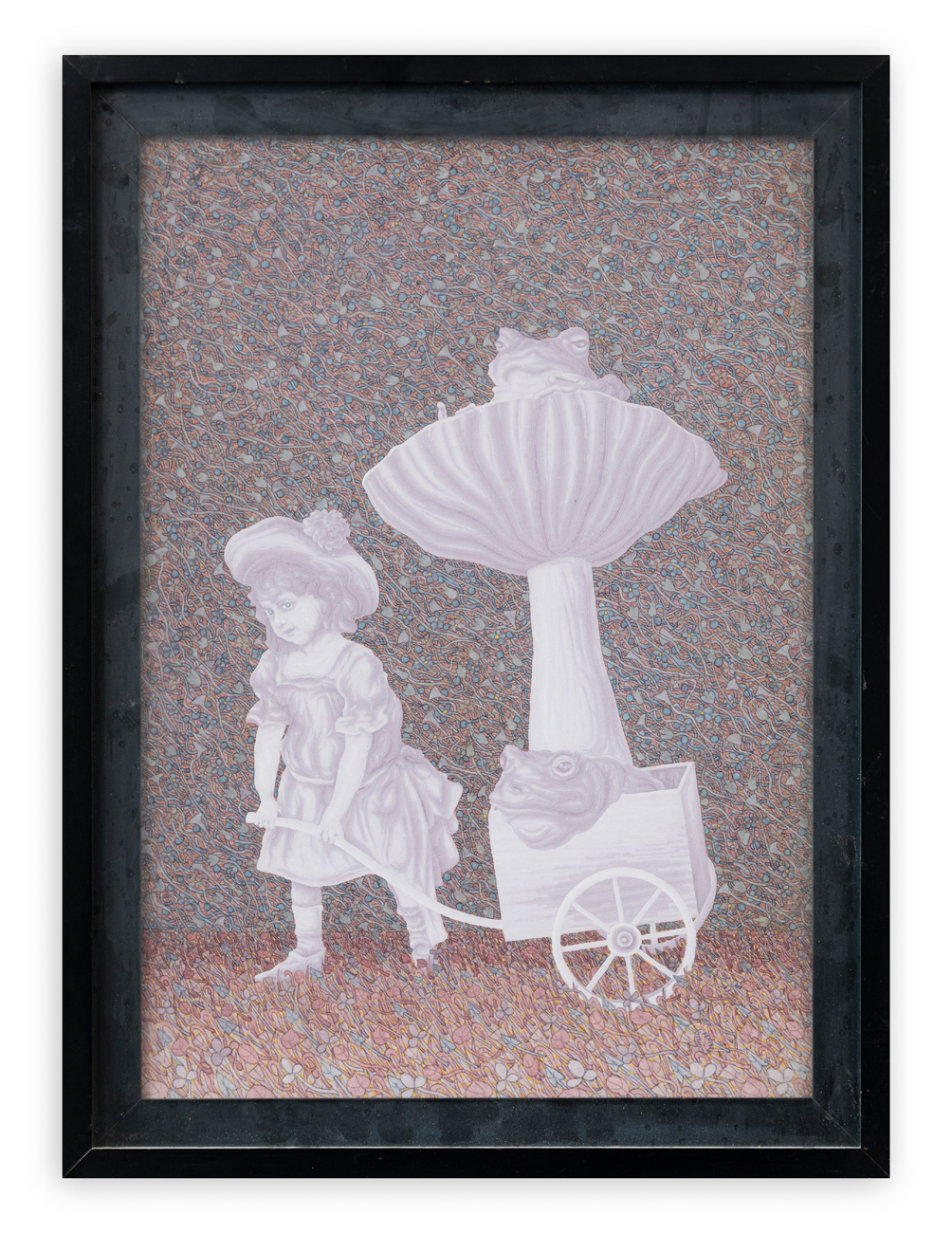 Etichetta e timbro della Galleria d'Arte del Naviglio (MI) con caratteristiche tecniche dell'opera al retro