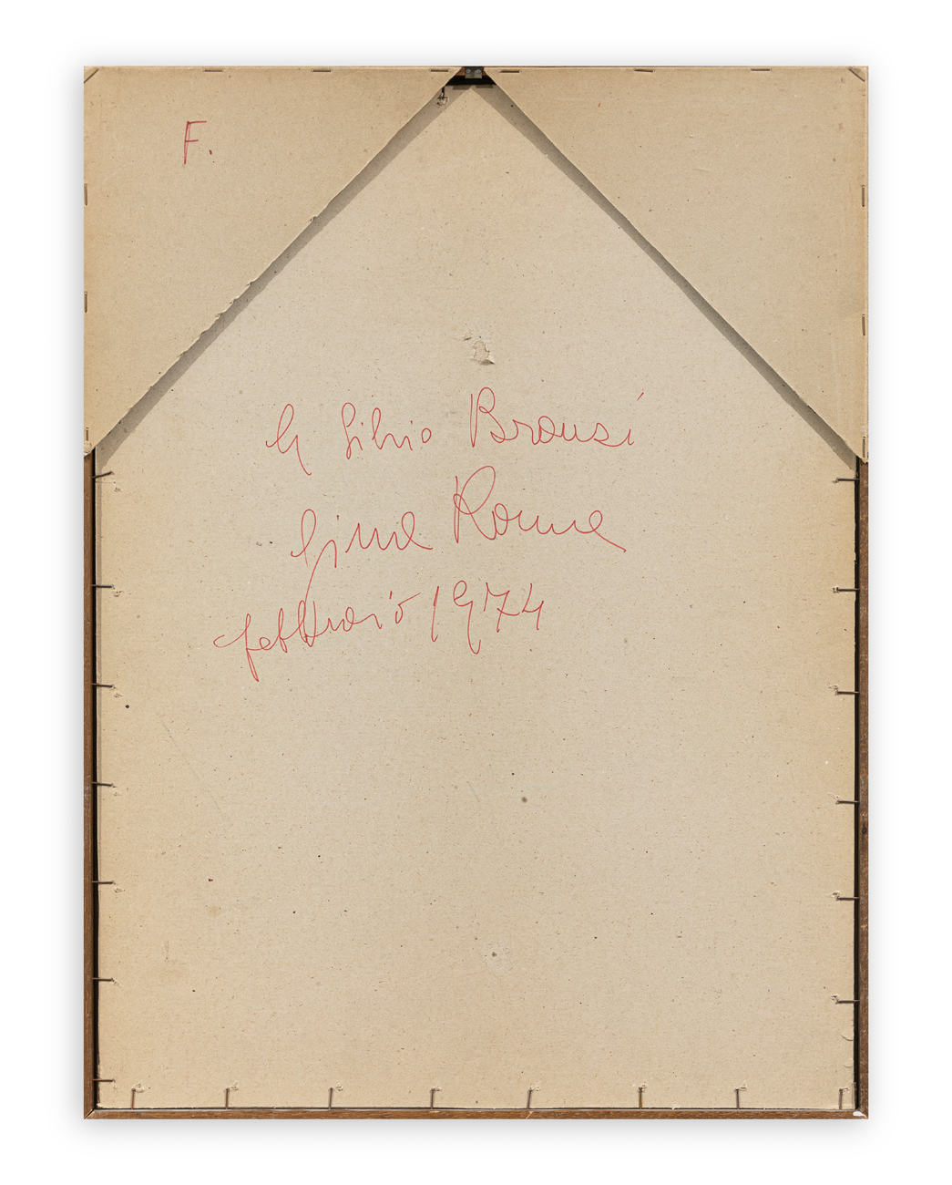 Firma e dedica ad personam datata 1974 a pennarello al retro del cartone protettivo
