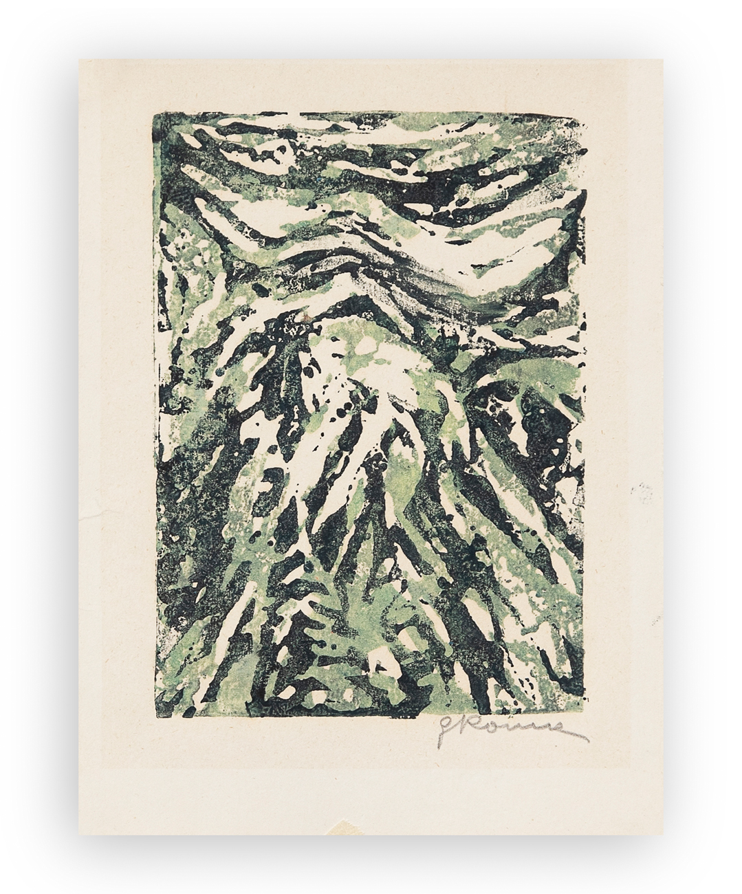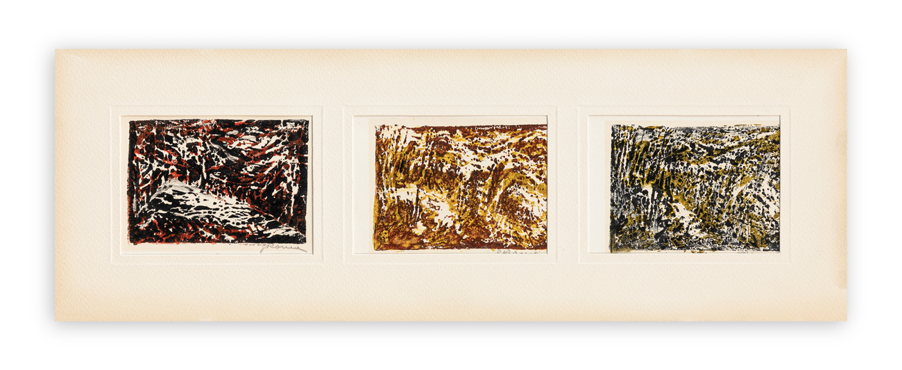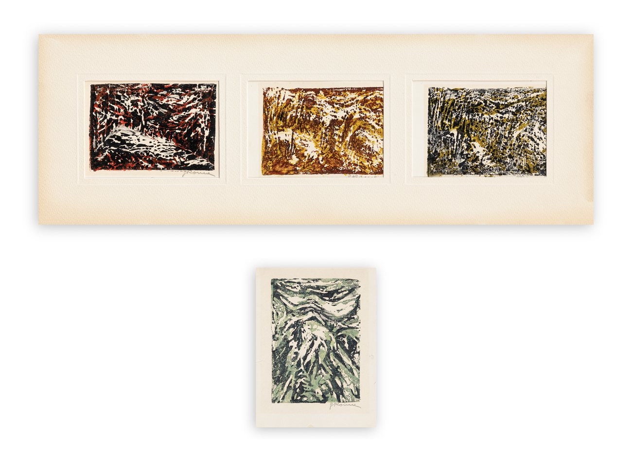Lotto unico di 4 monotipi ritoccati a mano, ciascuno recante firma a matita al fronte