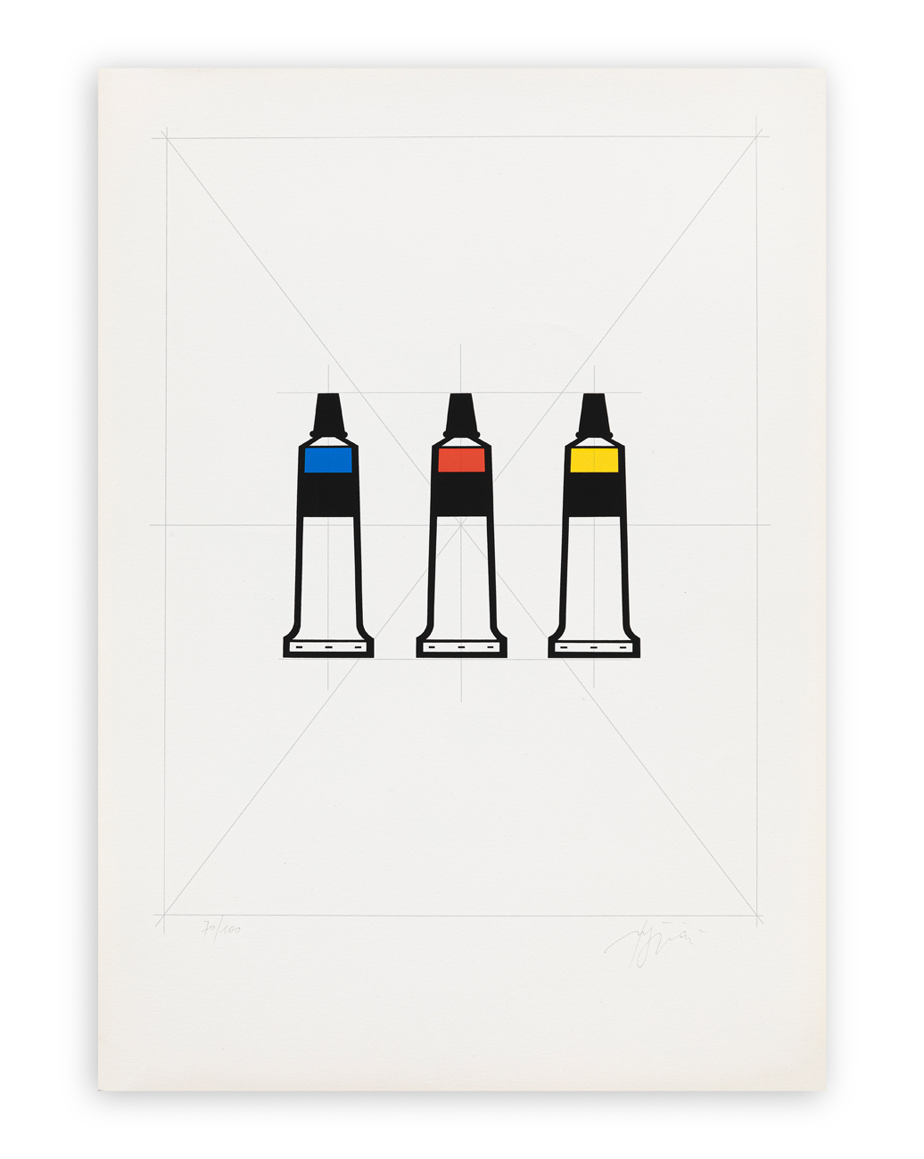 Firma e numerazione (Esemplare 70/100) a matita al fronte