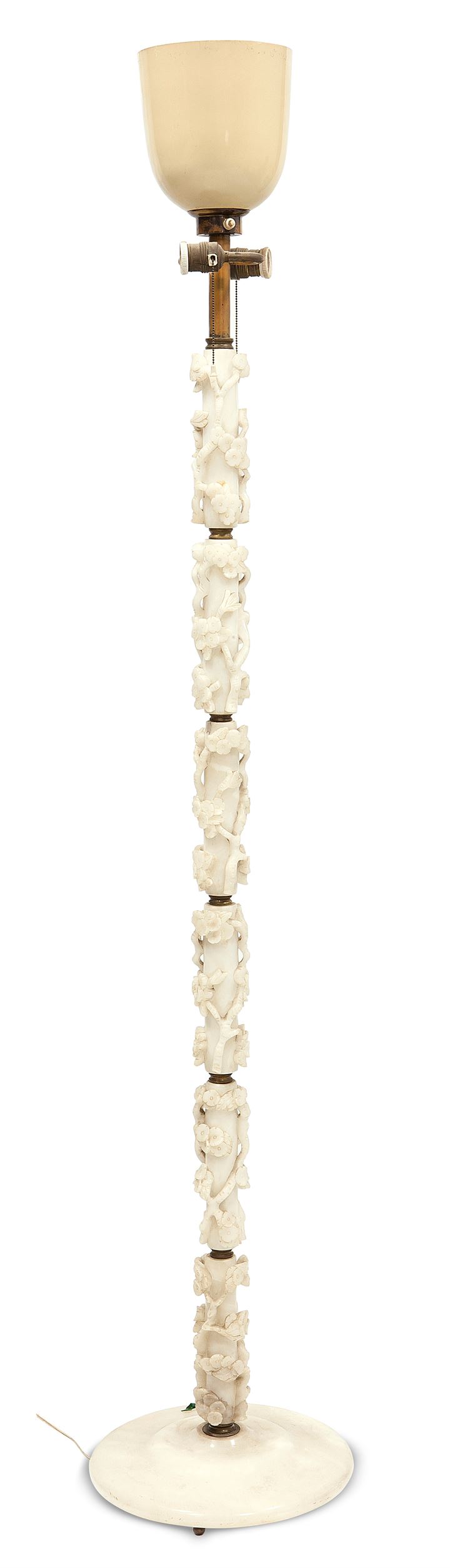 PRODUZIONE ITALIANA Lampada da terra in onice scolpito, ottone e paralume in...