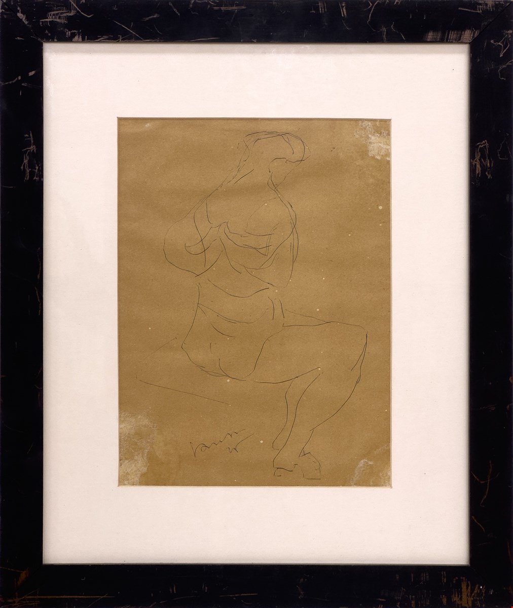 Lucio Fontana, Figura femminile, 1946, Inchiostro nero su carta, 25.5x19 cm, Archiviazione presso Fondazione Lucio Fontana, Pubblicazione sul Catalogo Ragionato, Firma al recto, Cornice in omaggio