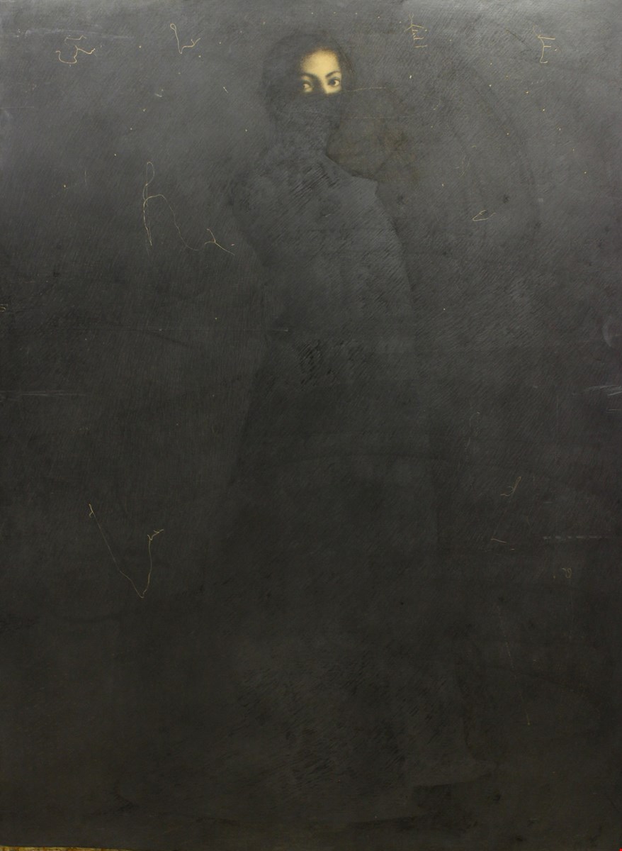 Omar Galliani, Figura femminile, 1996, Grafite su tavola, 190x130 cm,...