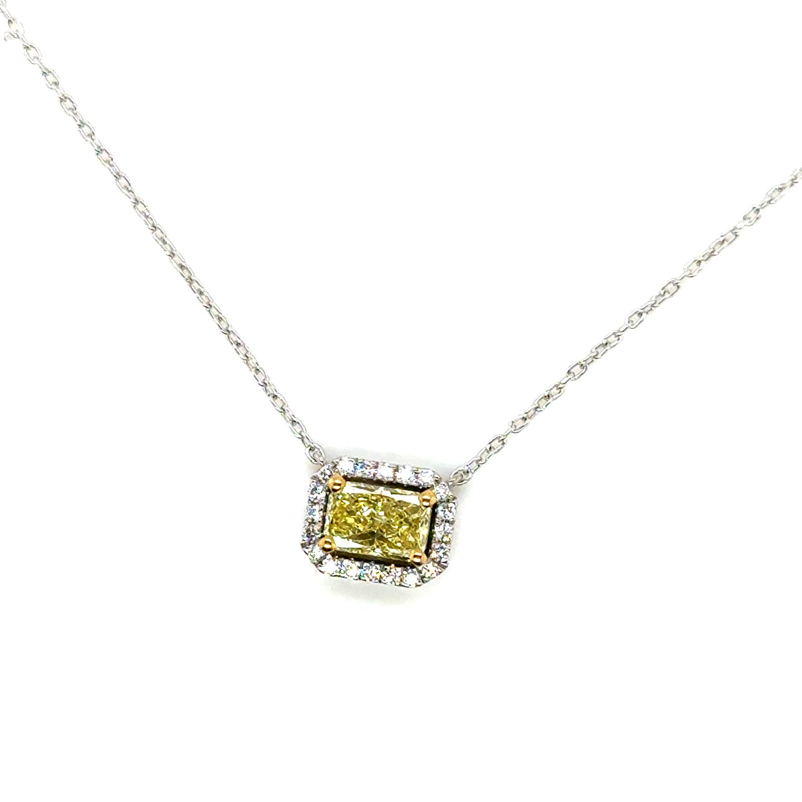 GIROCOLLO IN ORO BIANCO 14K 2.85 GR CON DIAMANTE CENTRALE DA 0.94 CARATI FANCY GIALLO INTENSO E DIAMANTI LATERALI PER PER 0.30 CT COLORE F-G PUREZZA VS - LUNGHEZZA 43 CM- SFP41201
