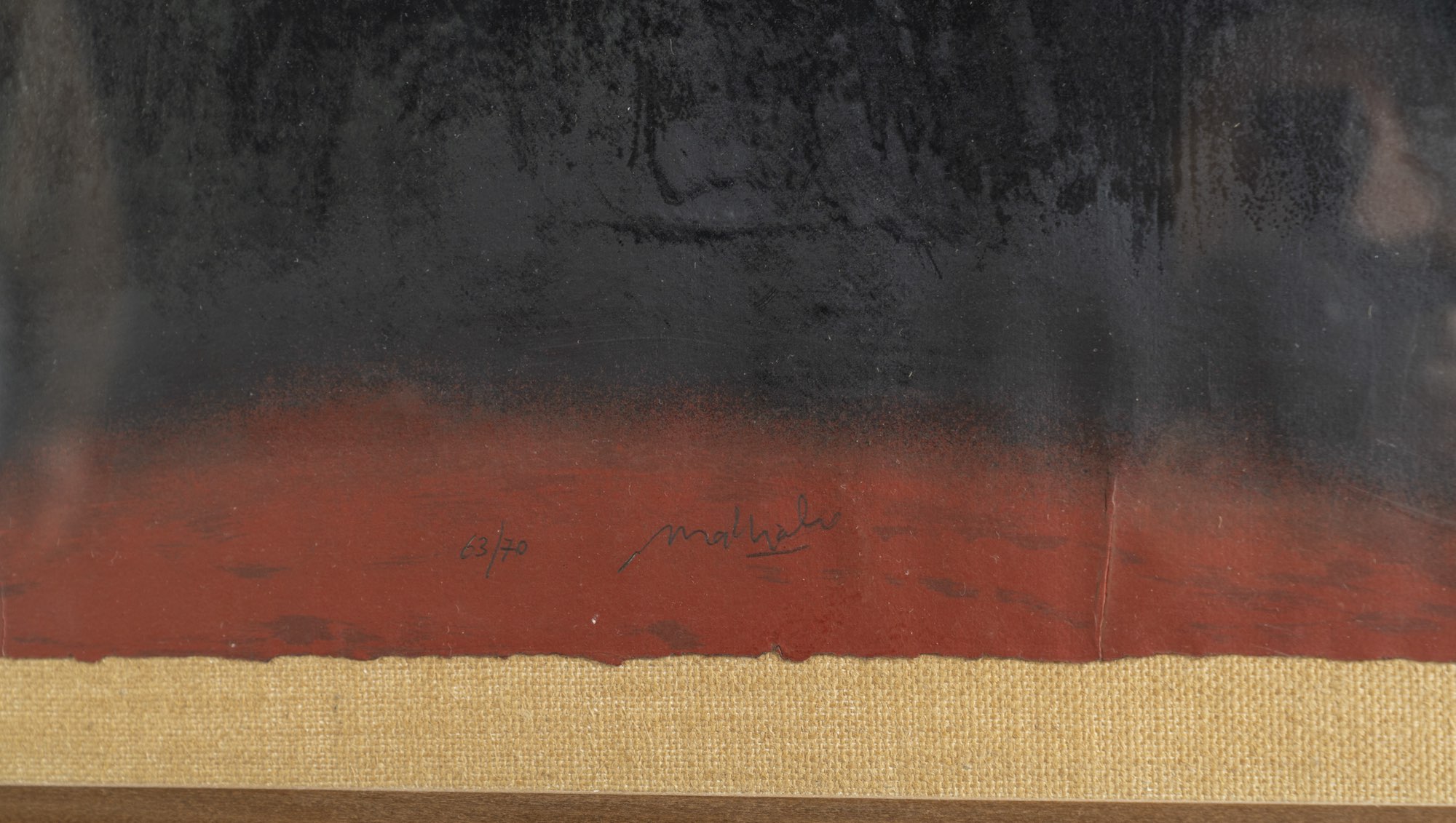 Litografia e tecnica mista a colori su carta applicata su tela, reca in basso al centro firma e numerazione 63/70 a matita, presenta al retro etichetta della Galleria Marescalchi- Bologna, foglio H cm 132x100 – con cornice H cm 146,5x114,5 - Provenienza: Galleria Marescalchi- Bologna; Collezione privata Bologna