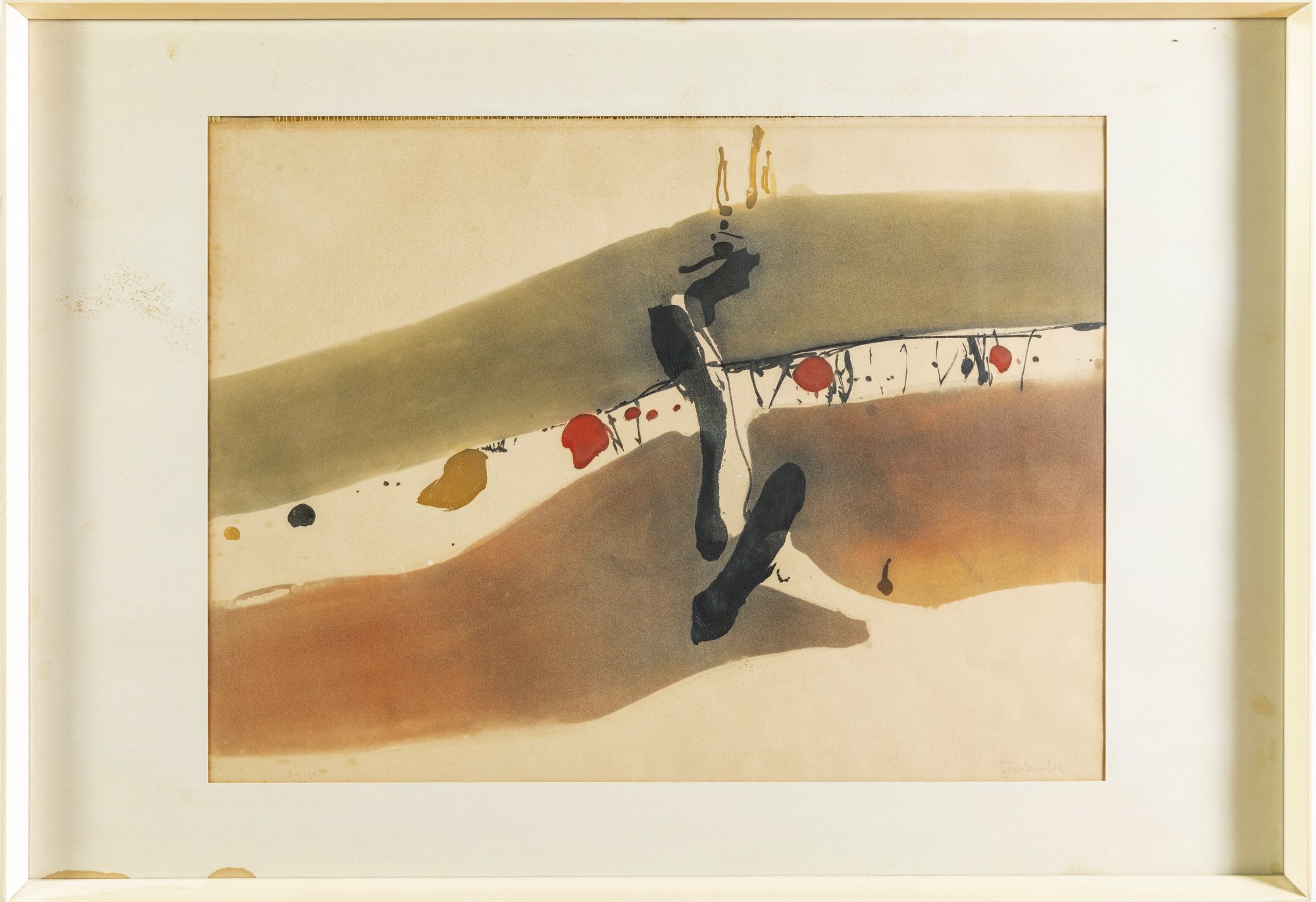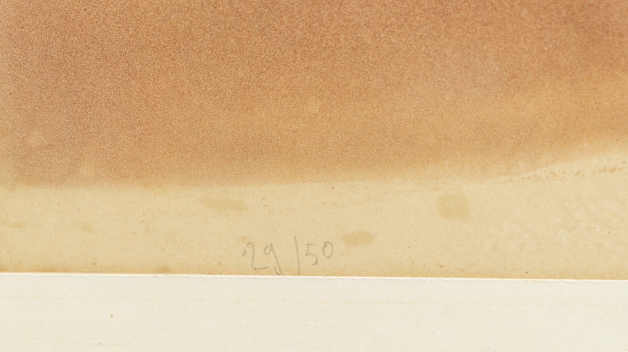Litografia a colori su carta, firmata a matita in basso a destra, reca numero di esemplare 29/50 in basso a sinistra, foglio H cm 49x65- con cornice H cm 66,5x94