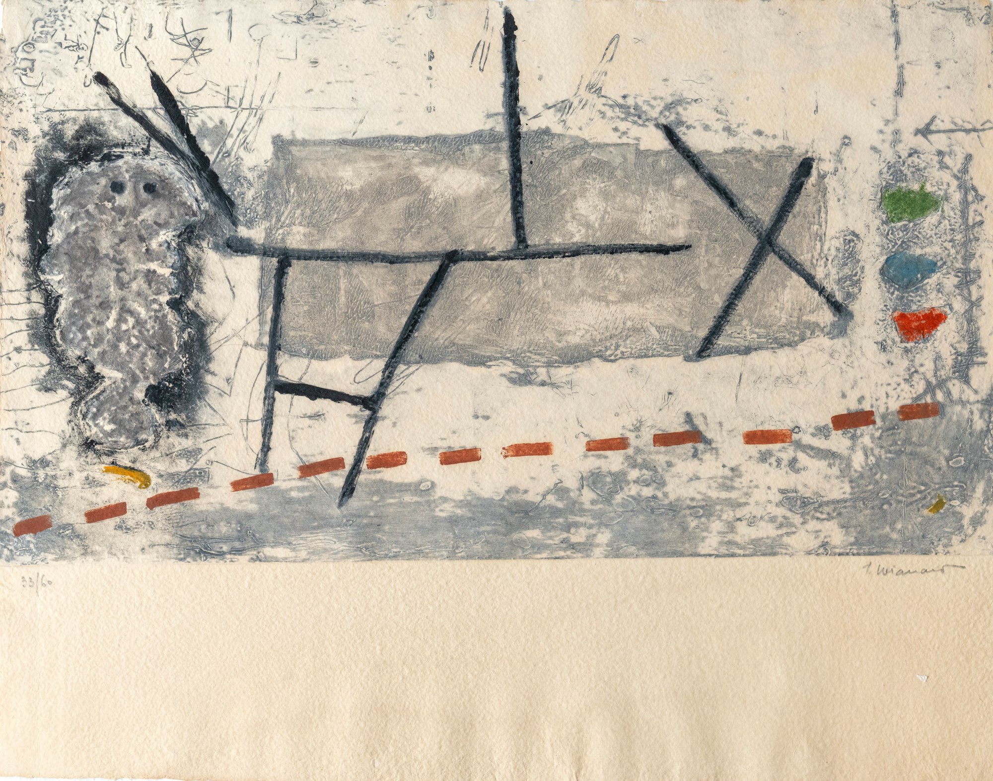 Acquaforte colorata e carborundum su carta, firmato a matita in basso a destra, reca numero di esemplare in basso a sinistra 33/60, lastra H cm 37x66 – foglio H cm 51x66