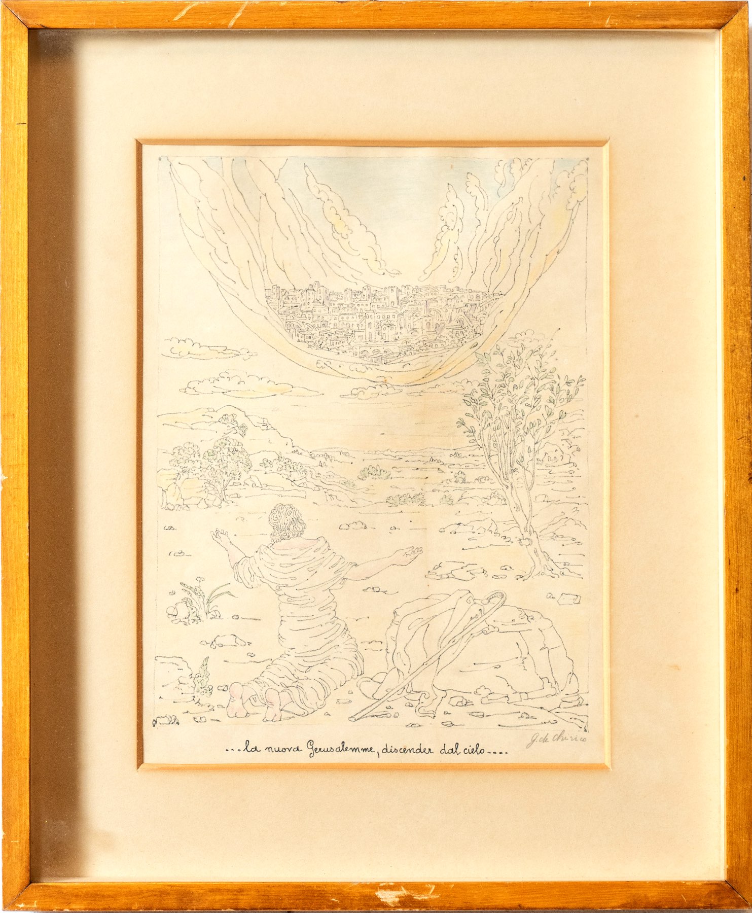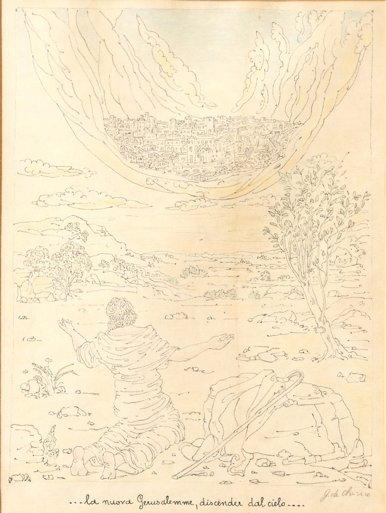 Giorgio De Chirico (Volo 1888 – Roma 1978), “La nuova Gerusalemme, discender dal cielo” 1941.