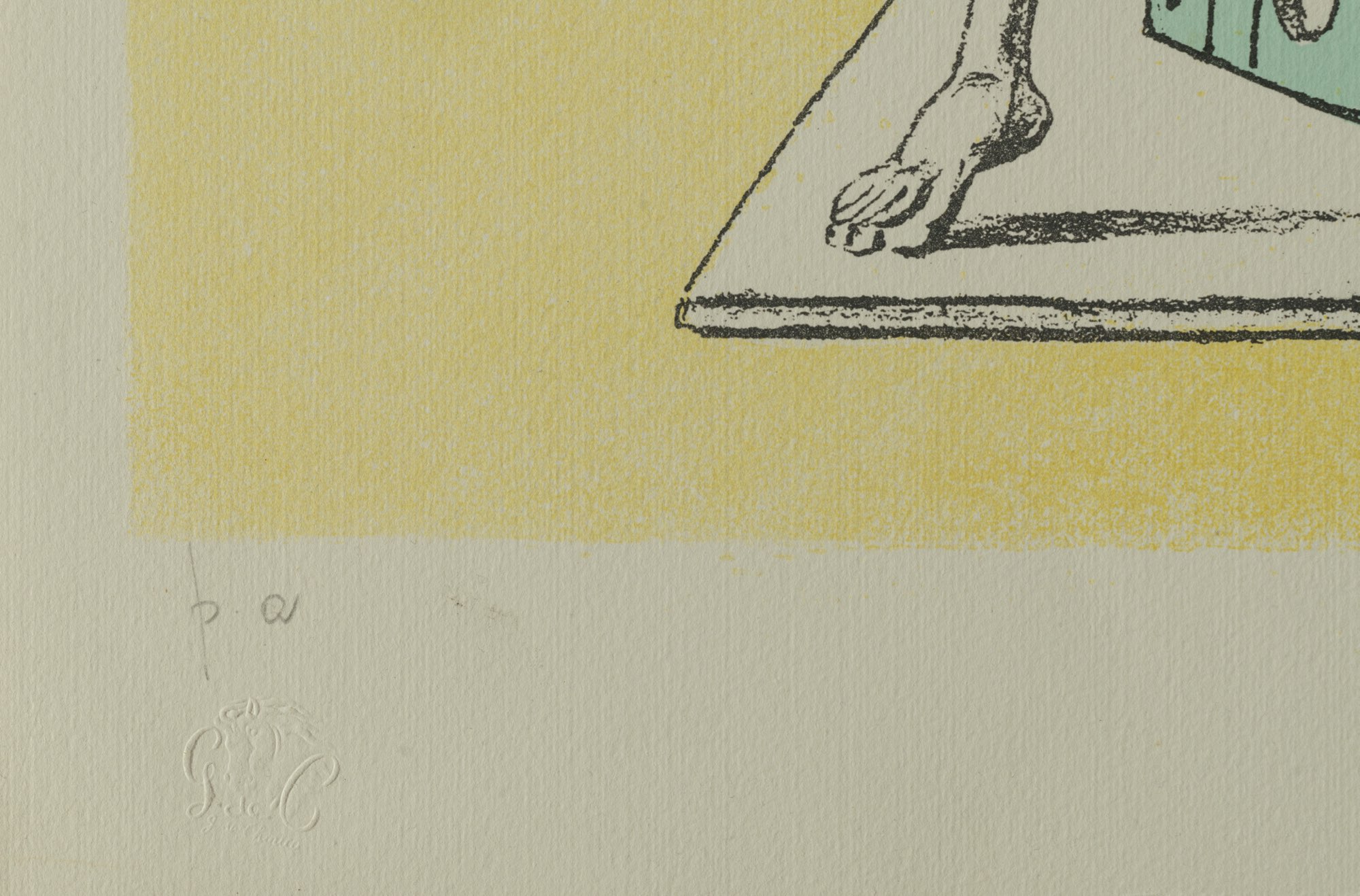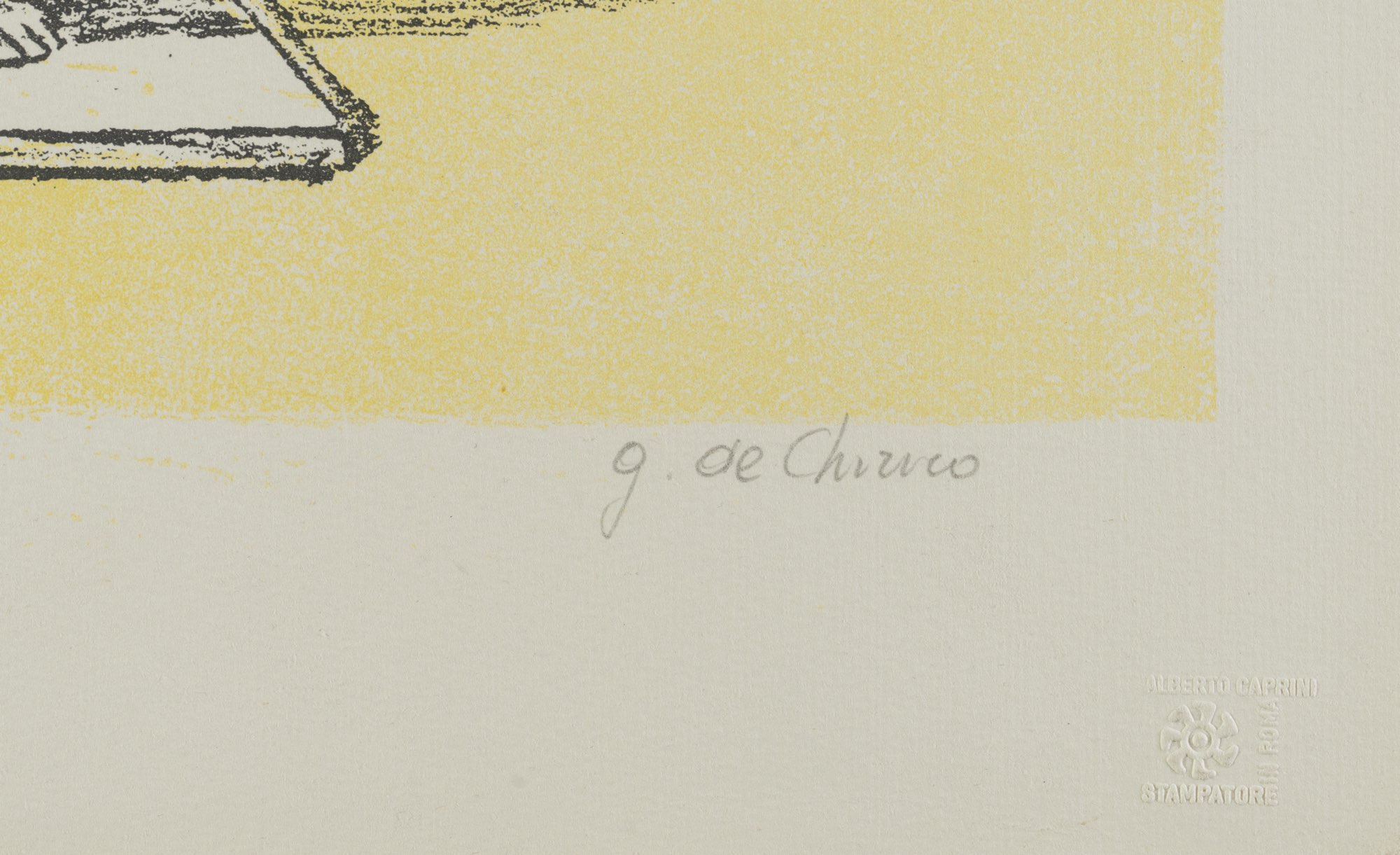 Litografia a colori su carta, firmato a matita in basso a destra, esemplare “p.a.” in basso a sinistra, timbri a secco “G. de C.” e “Alberto Caprini Stampatore in Roma”, lastra H cm 59x44,5 – foglio H cm 70x50